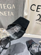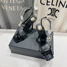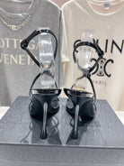 HIGH HEEL SANDALS IN BLACK GLOSSY CALFSKIN WTH STRAPS ATTACHED GEM