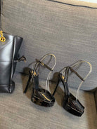 LA SCANDALE PLATFORM SANDALS IN BLACK GLOSSY CALFSKIN