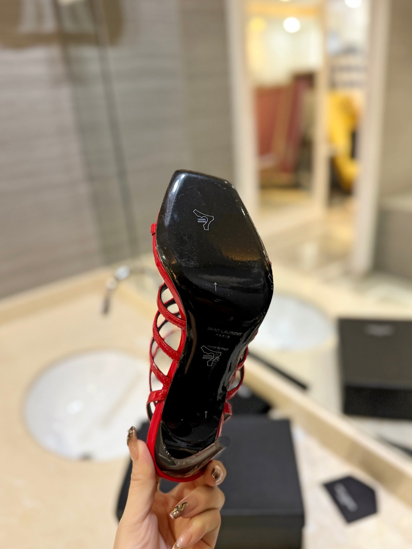SL JERRY HEELED SANDALS RED POLISHED CALFSKIN