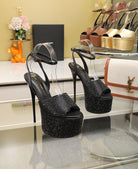 SL SUPER HIGH HEELS SANDAL BLACK SATIN-BLACK CRYSTAL