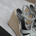 SL TRIBUTE WEDGE SANDALS TEMPERED GREY POLISHED CALFSKIN