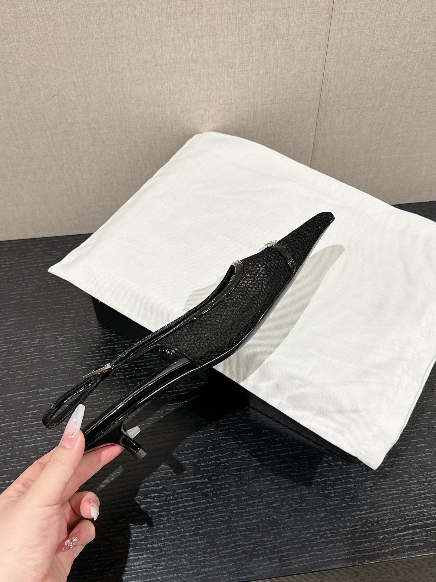 SL CHERISH BUCKLE SLINGBACK 45 BLACK MESH