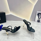 SL CRYSTAL BUCKLE HIGH HEELS BLACK SATIN