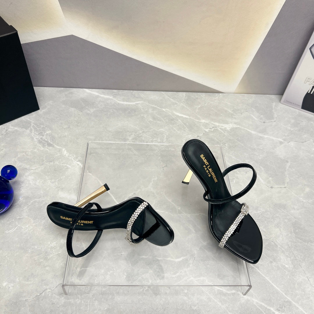 SL CRYSTAL THIN BELT HIGH HEELS BLACK CALFSKIN