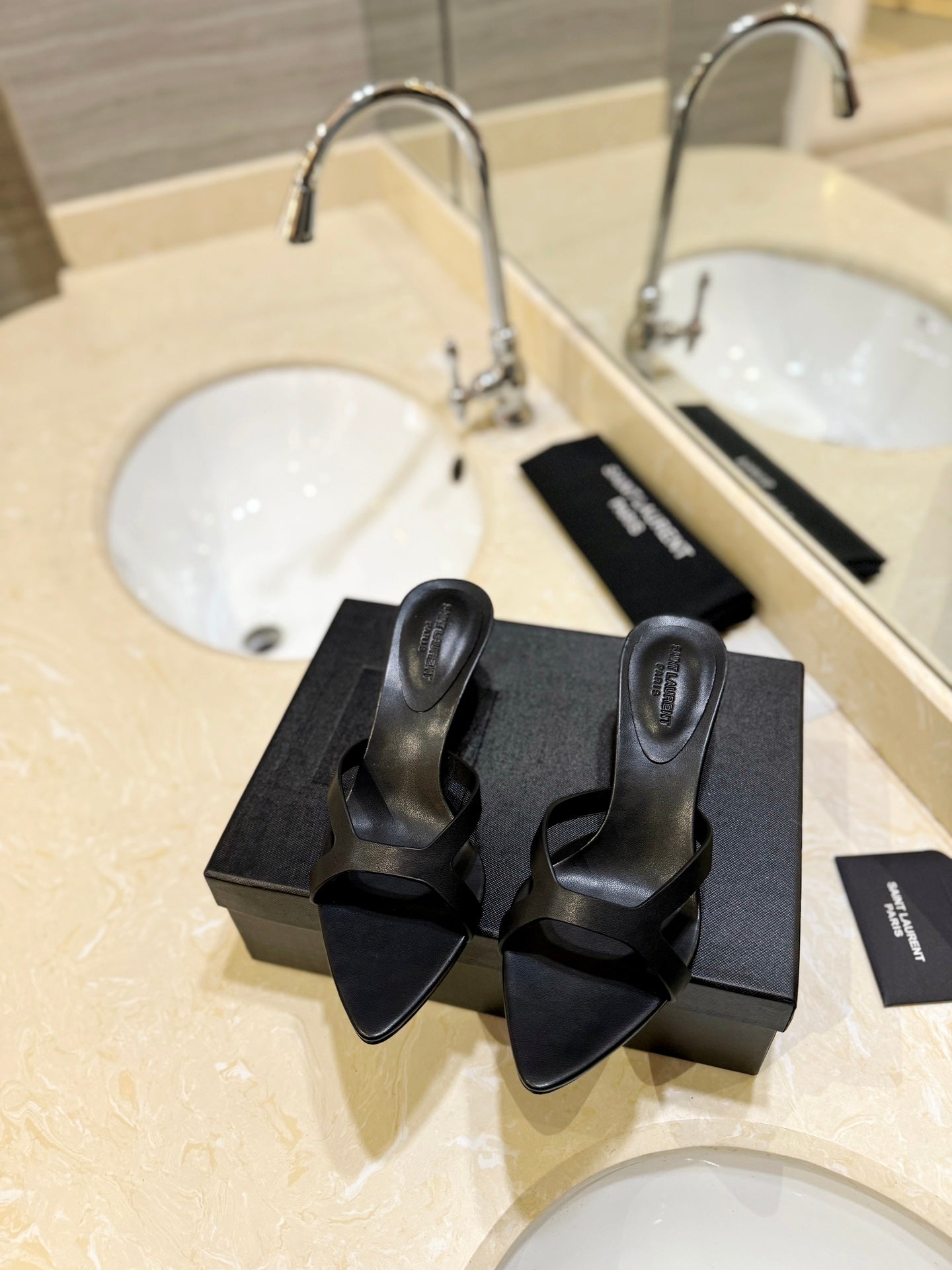 SL OPEN-TOES HIGH HEELS SLIPPER BLACK CALFSKIN