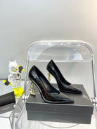 SL OPYUM BASIC HIGH HEEL BLACK CALFSKIN-GOLD HEEL