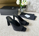 SL SEPT MULES BLACK SATIN AND RHINESTONES