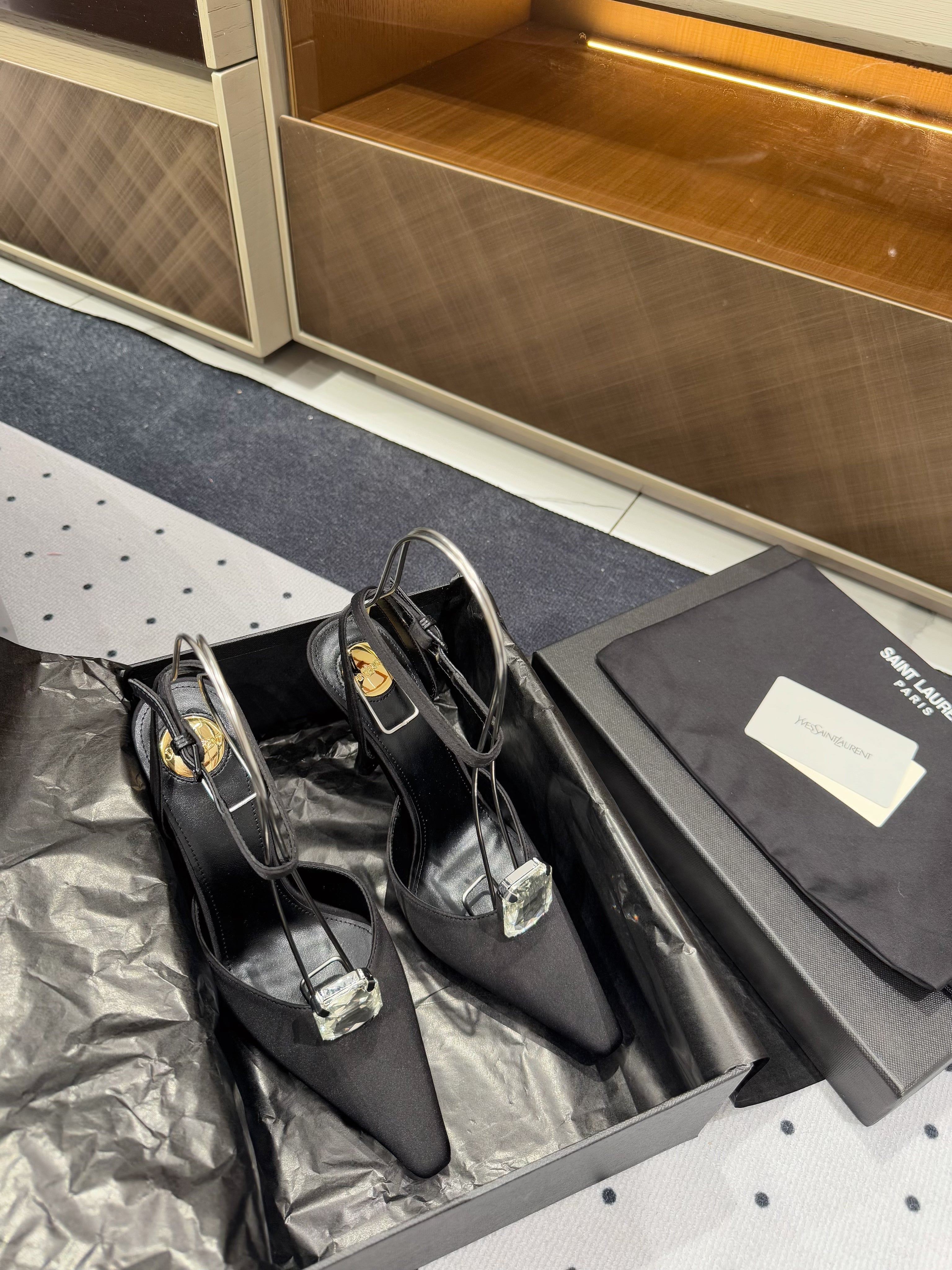 HARLOW PUMPS IN BLACK SATIN CREPE AND CRYSTALS