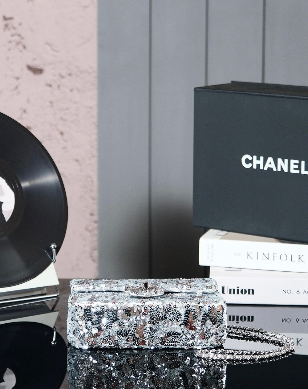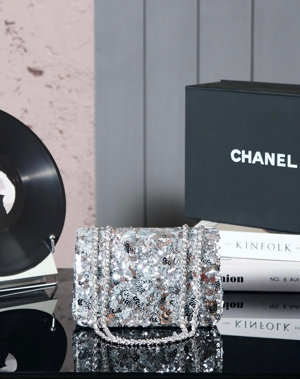 • Material: Sequin, Calfskin