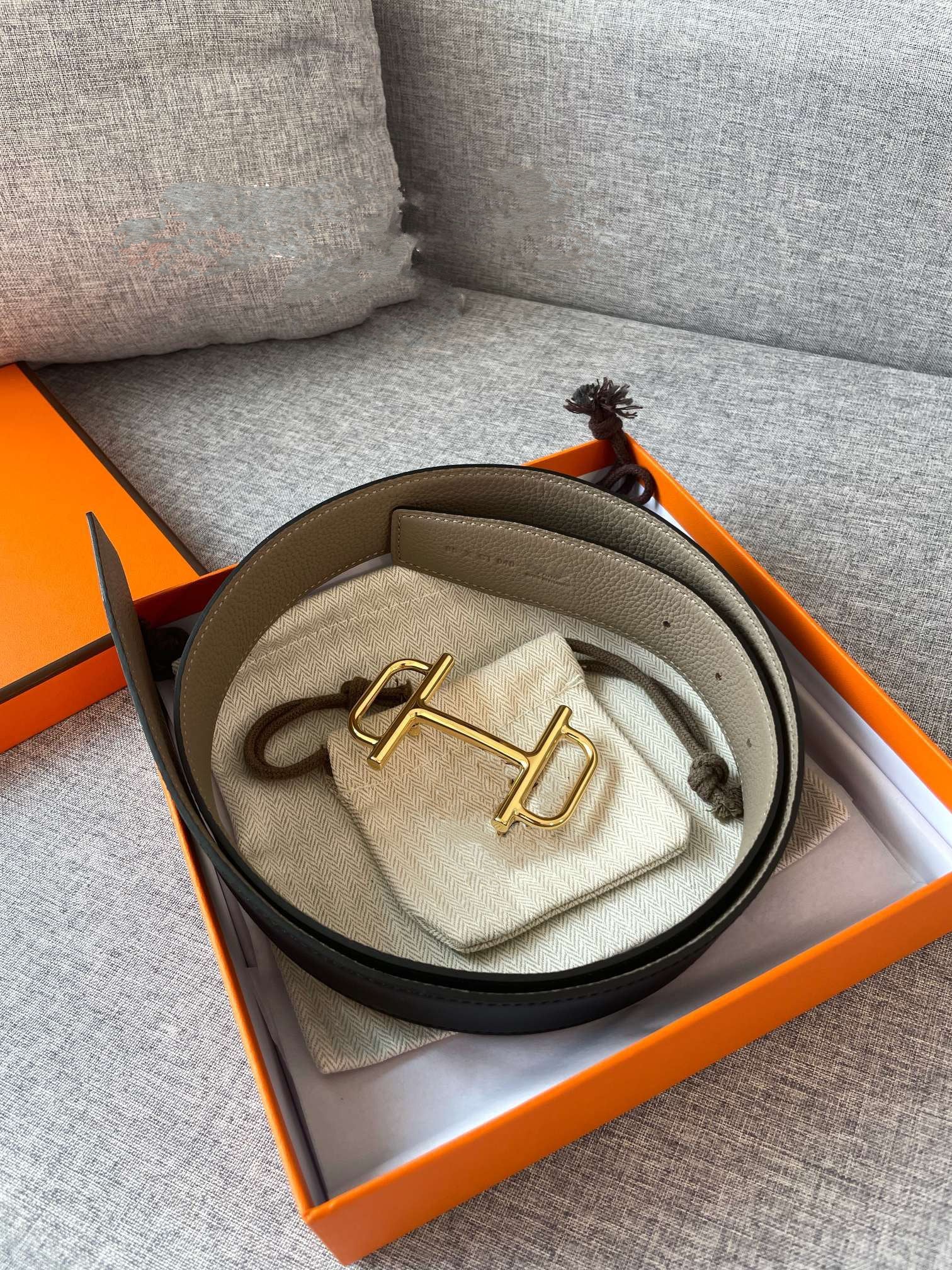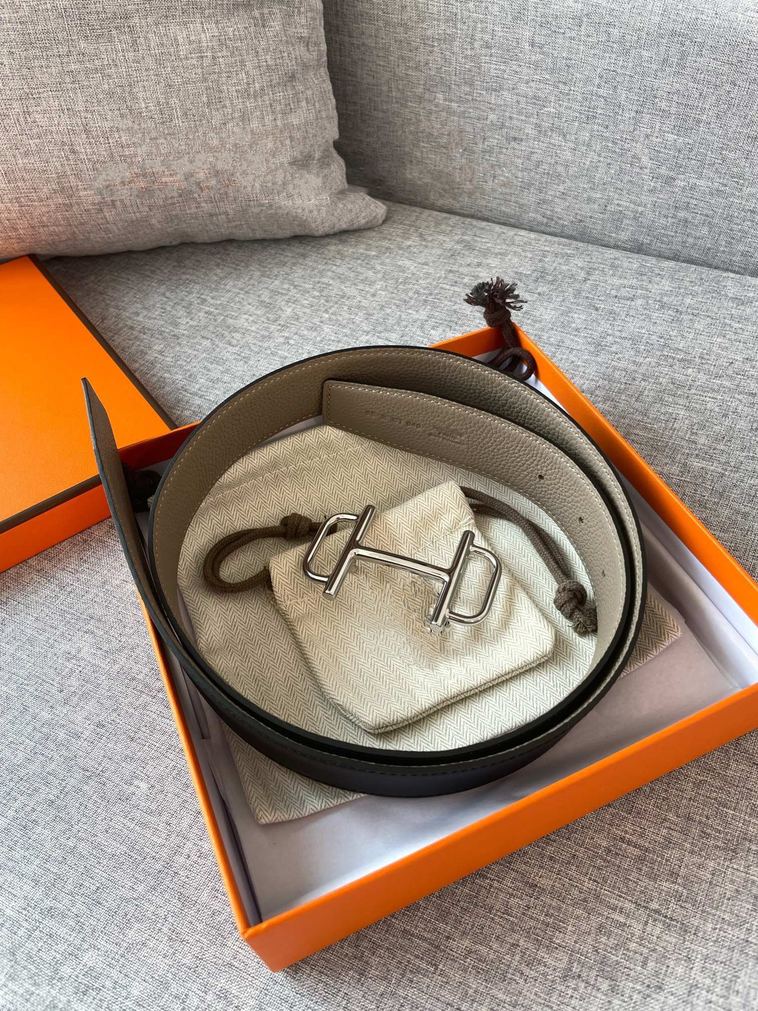 3.8CM BELT H REVERSIBLE BLACK GREY LEATHER
