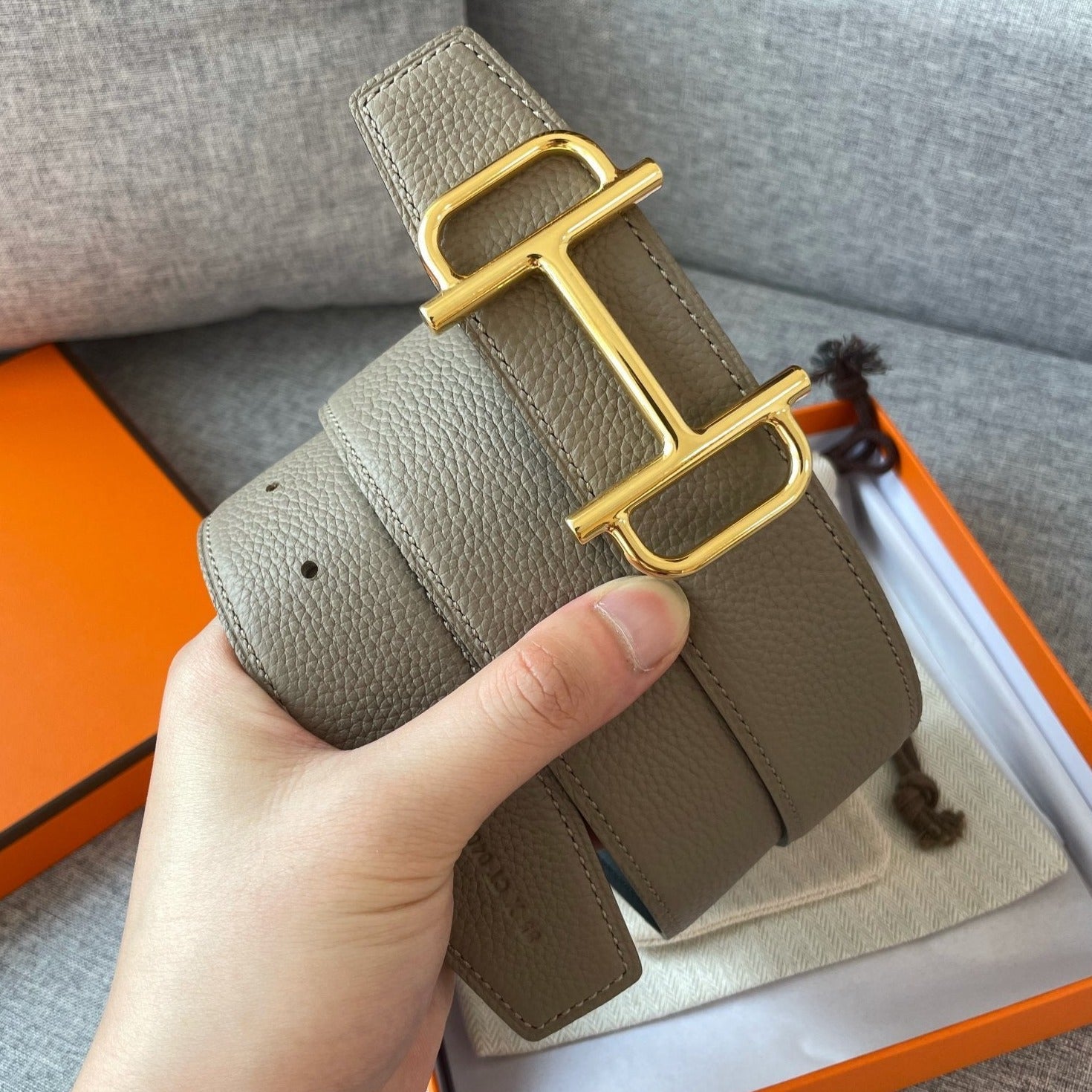• H Buckle in permabrass plated metal.