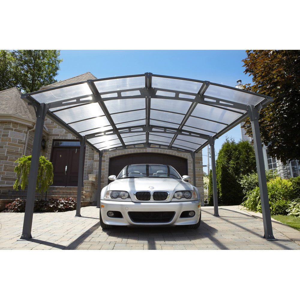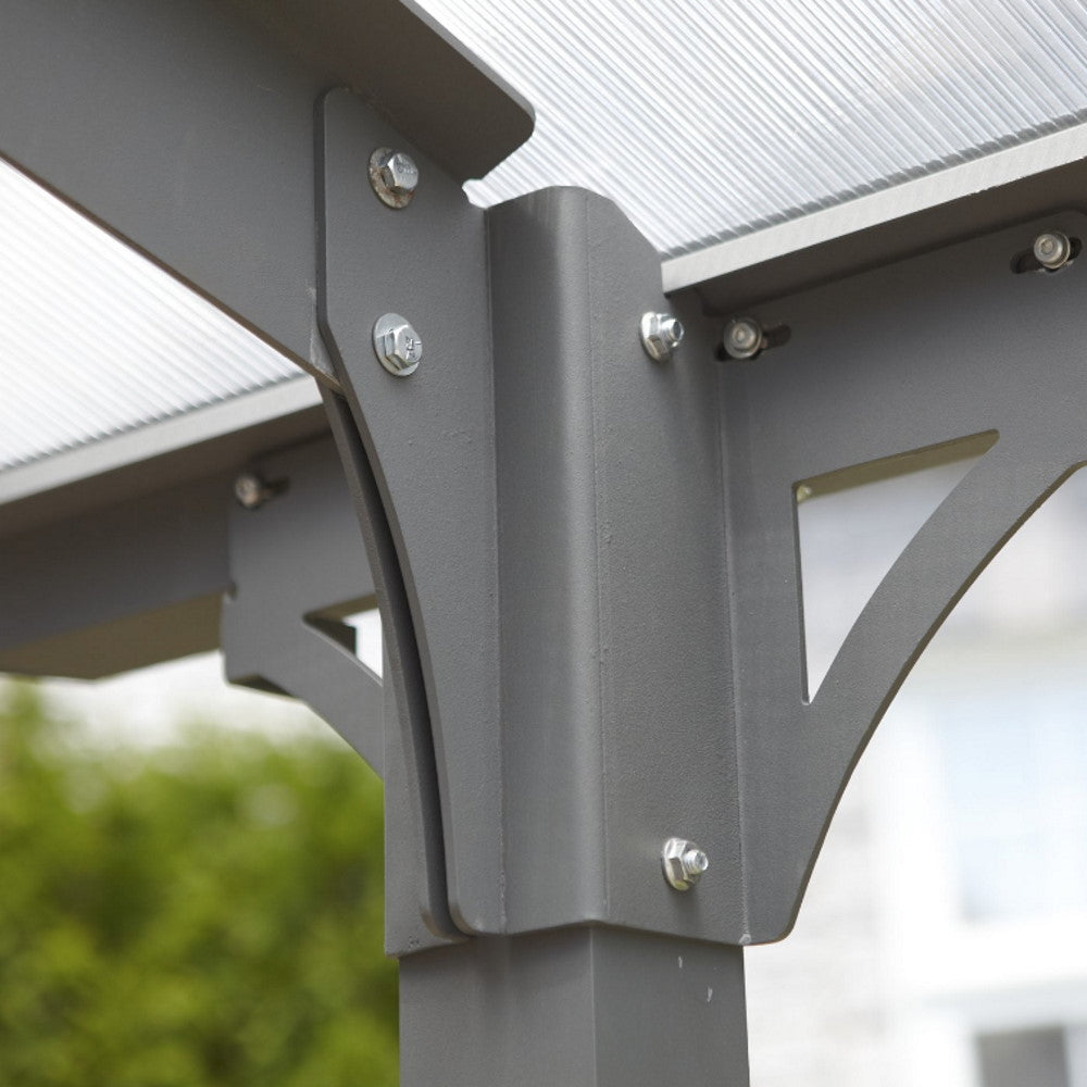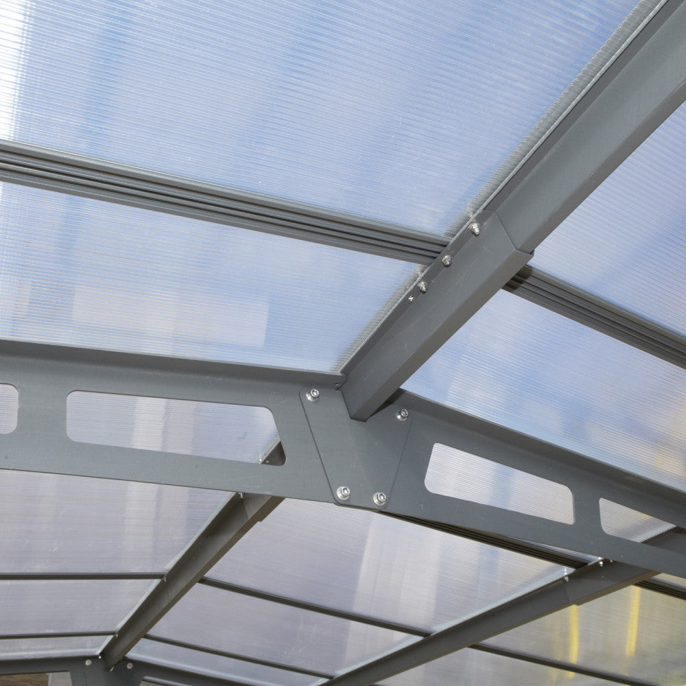 - Reinforced roof is made from 0.3125-in polycarbonate material with UV protection