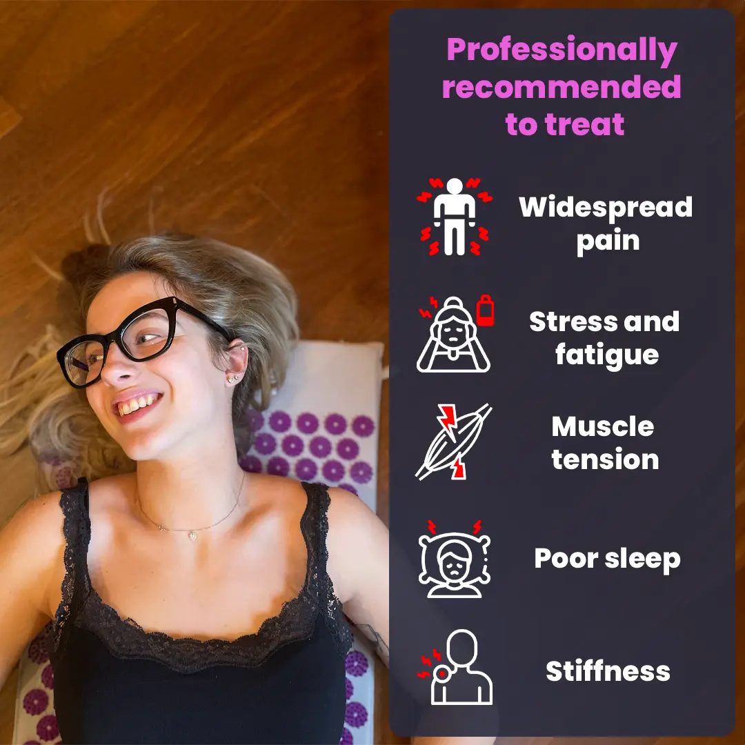 Reduction of Pain and Stiffness: Through regular use, the Vevazen mat can significantly help reduce chronic pain, muscle stiffness and symptoms associated with fibromyalgia, such as fatigue and so-called "fibro fog" (cognitive fog).