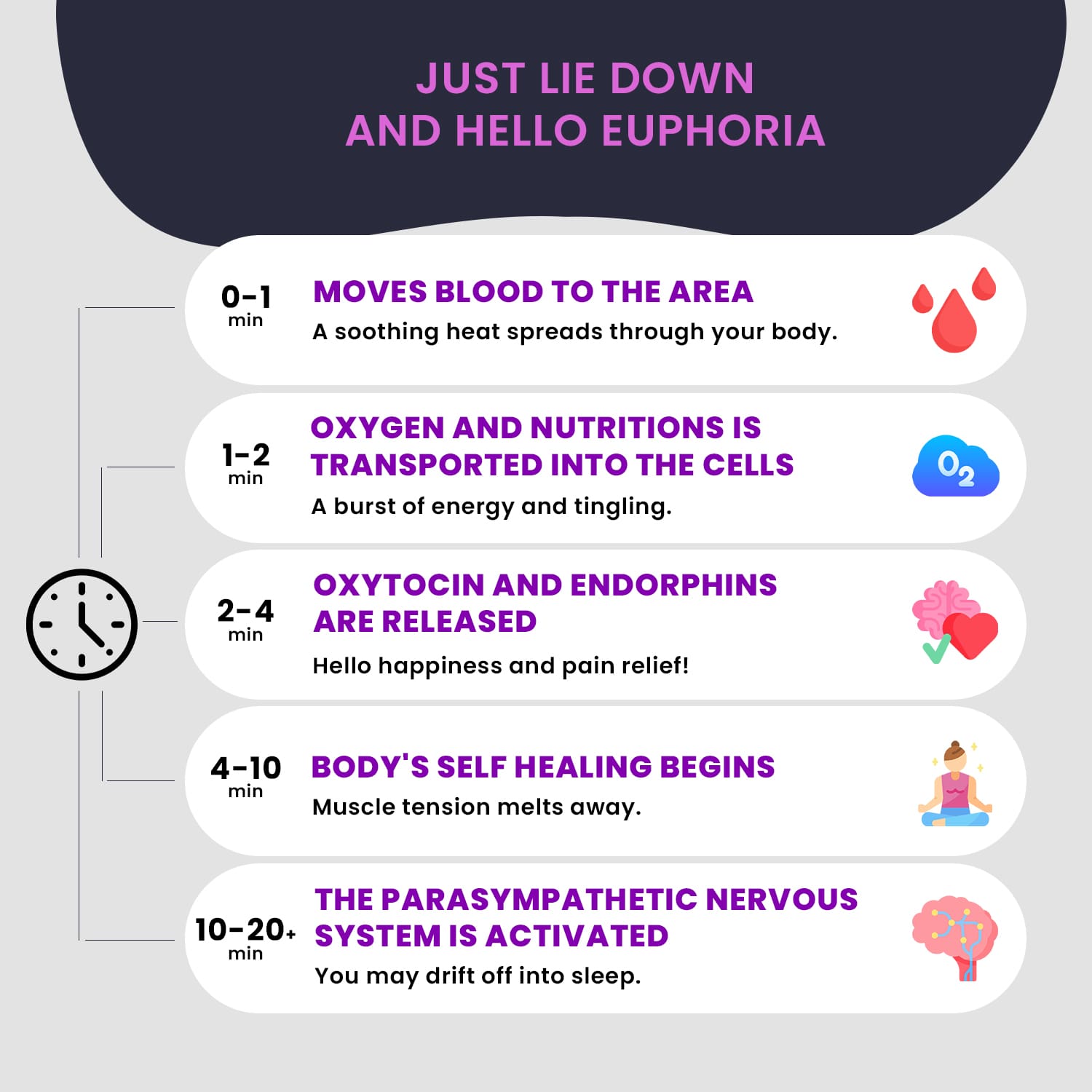 Duration of Session: Lie on the mat for about 20 to 30 minutes a day. You can use it while relaxing, meditating or even while listening to music or reading.