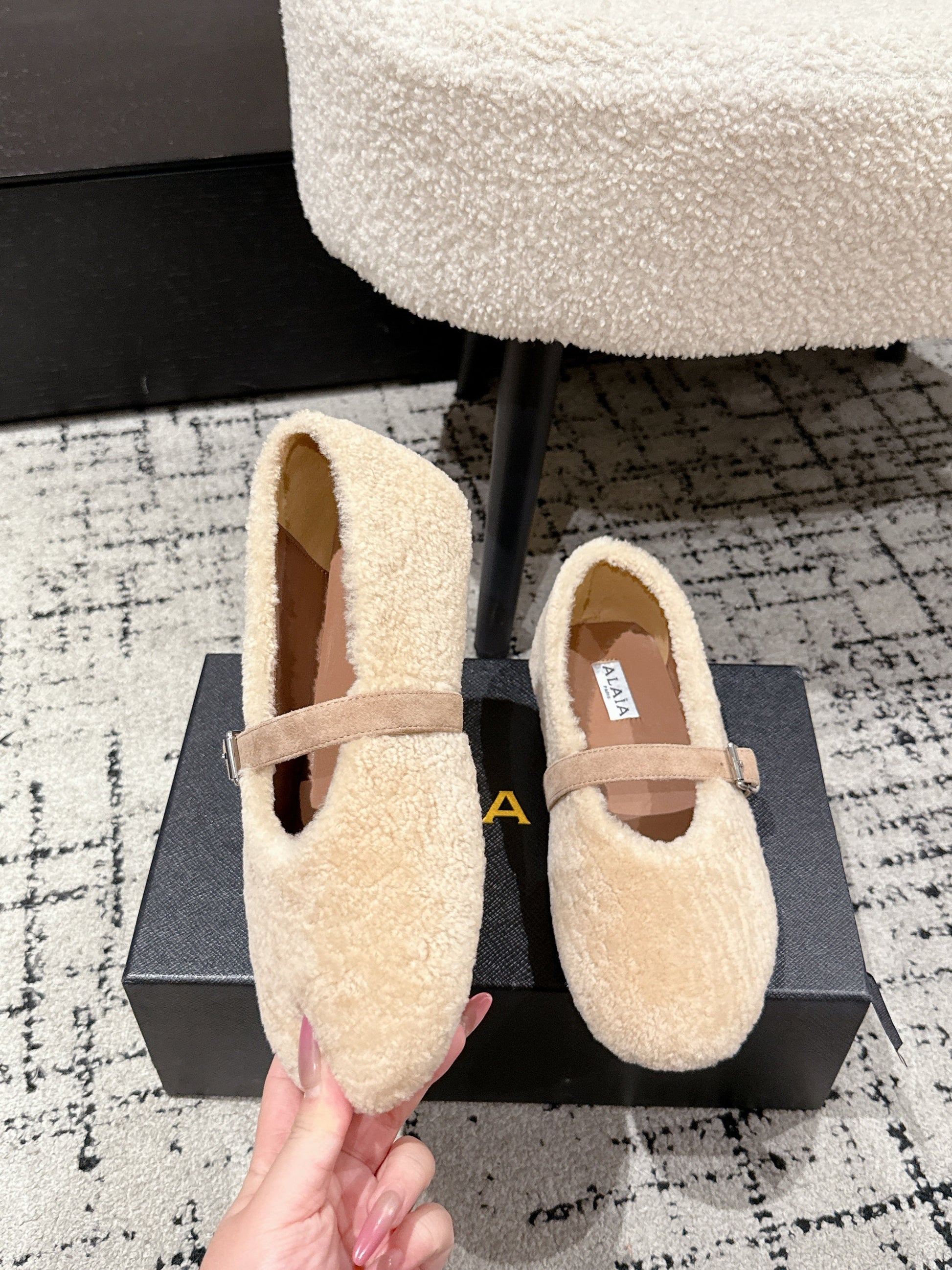 Alaia 2025 Ballet Flat Beige Wool 558649