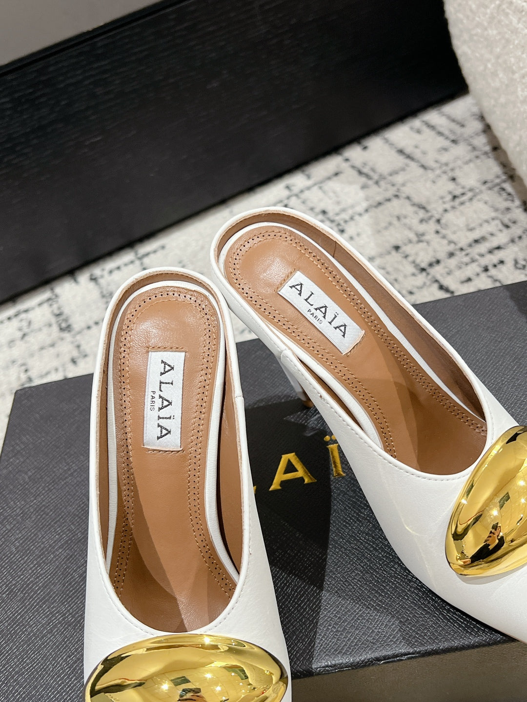 Alaia 25 Azzedine High Heels Mules With Gold Hardware White Calfskin 293186