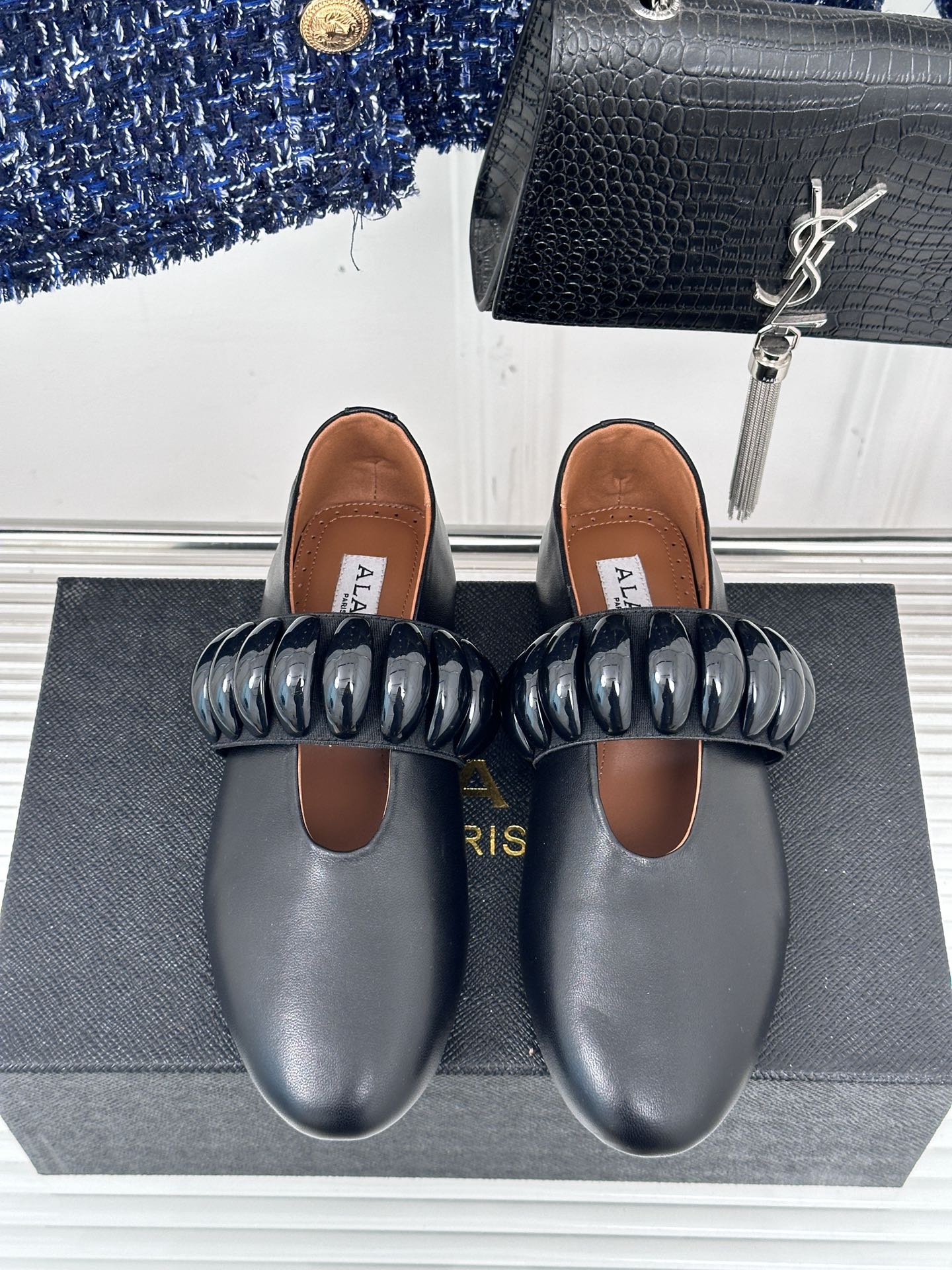 Alaia 25 Mary Jane Jewel Ballet Flats Black Calfskin 293244