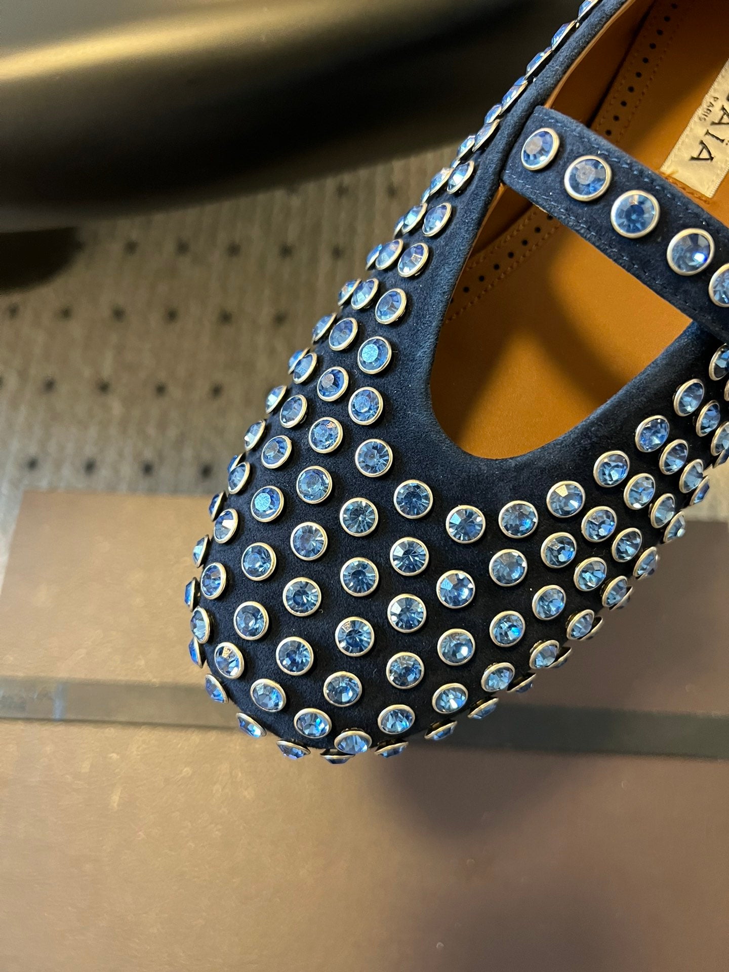 Alaia 25 Strass Ballet Flats Navy Blue Suede Goatskin 303724