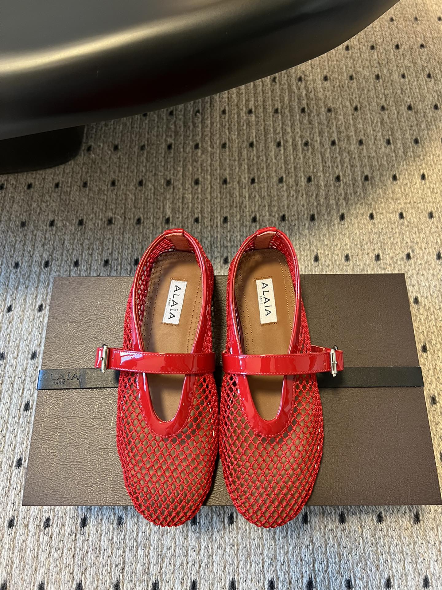 Alaia 25 Women's Ballet Flat Red Sheepskin 303702