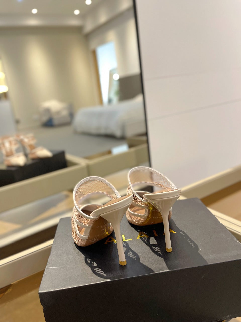 alaia mule 110 fishnet cream heart lambskin