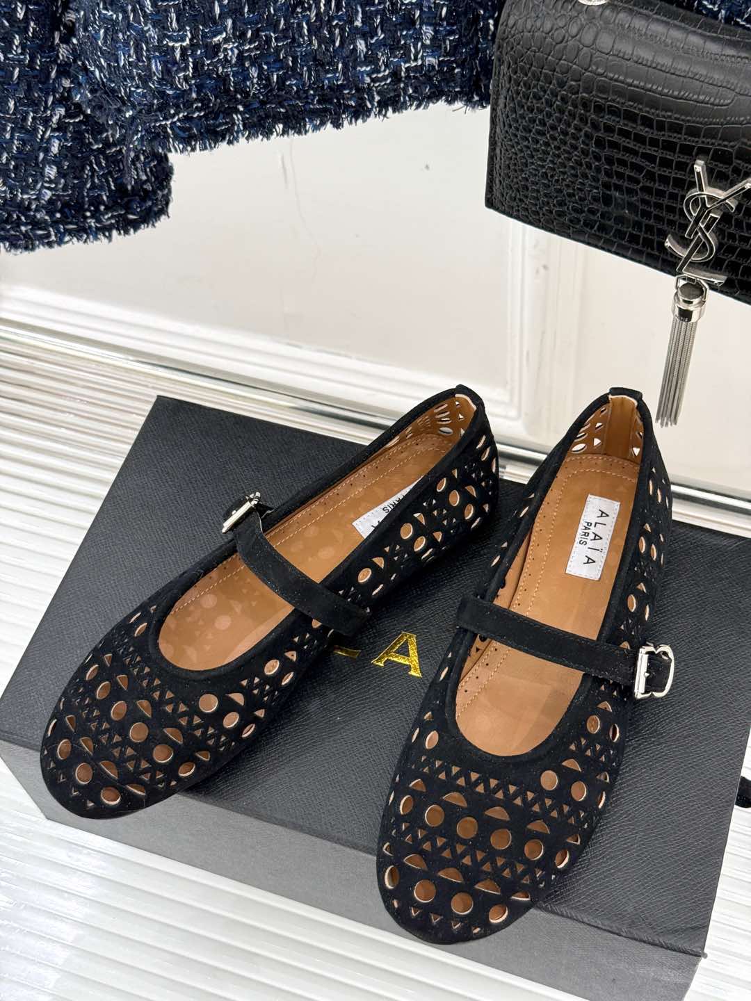 Alaia Women's Ballet Flat Black Suede 293217