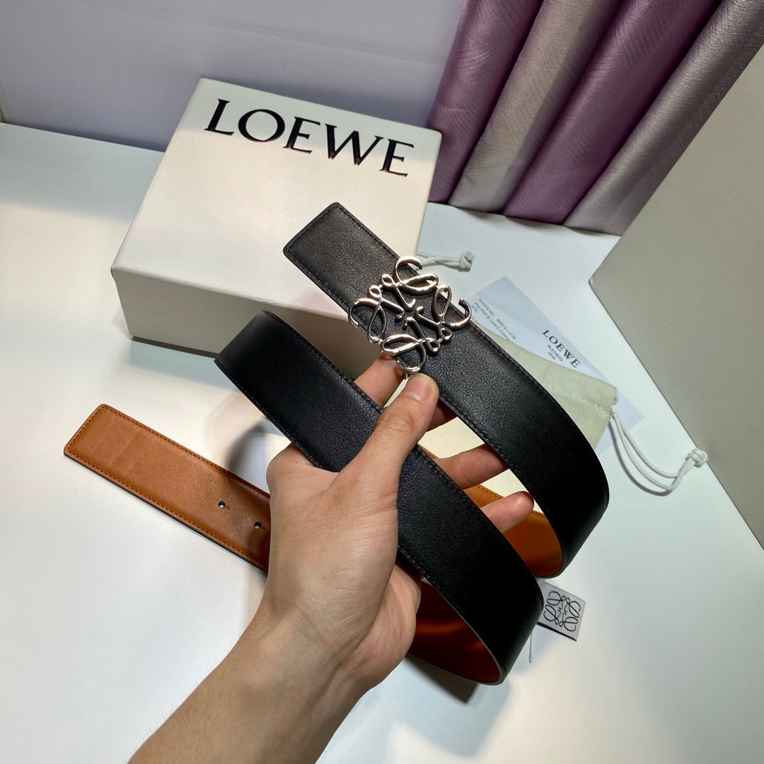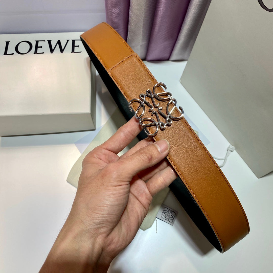 Anagram belt 40mm reversible black brown silver buckle