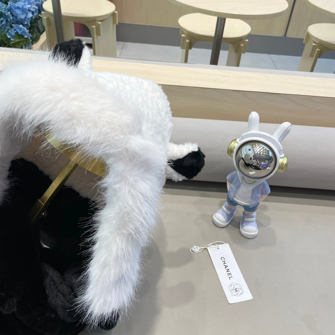 BALACLAVA HAT IN BLACK MIX WHITE FLEECE 422216