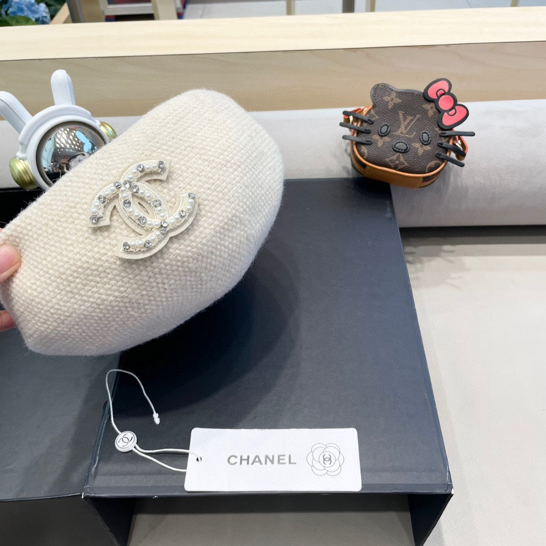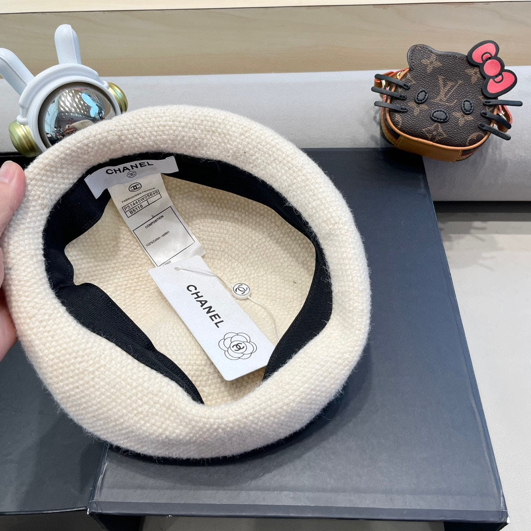 BERET HAT IN WHITE COTTON AND LINEN 417832