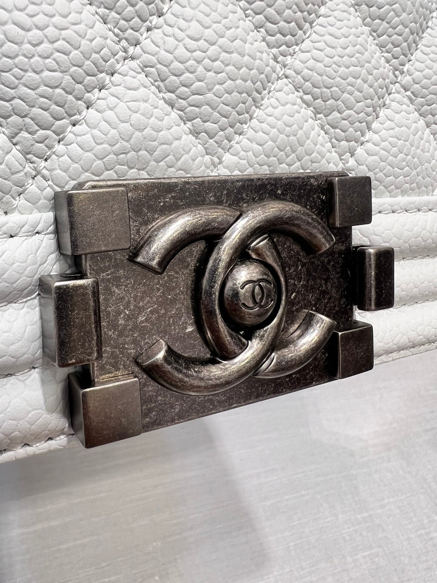 BOY BAG MEDIUM 25 WHITE CAVIAR RUTHENIUM HARDWARE