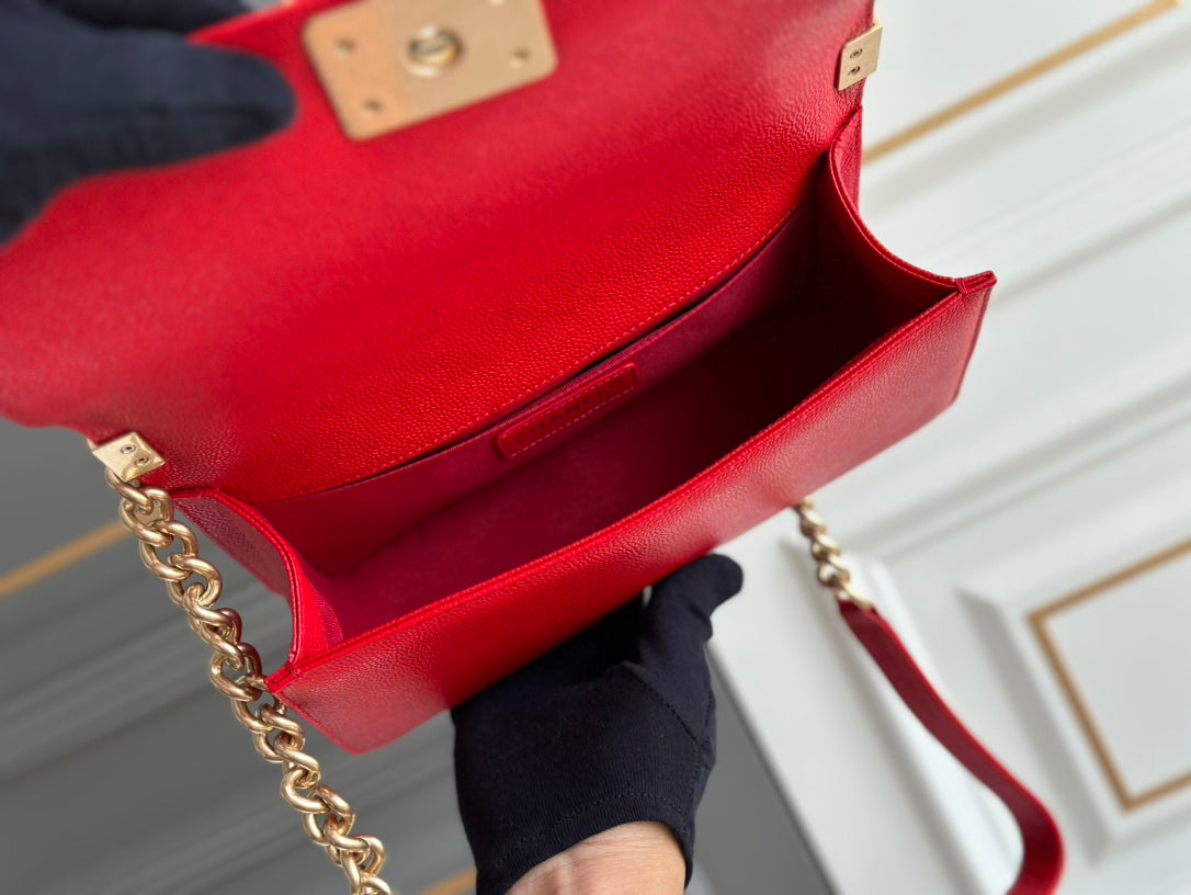boy medium 25 red quilted caviar aged ghw