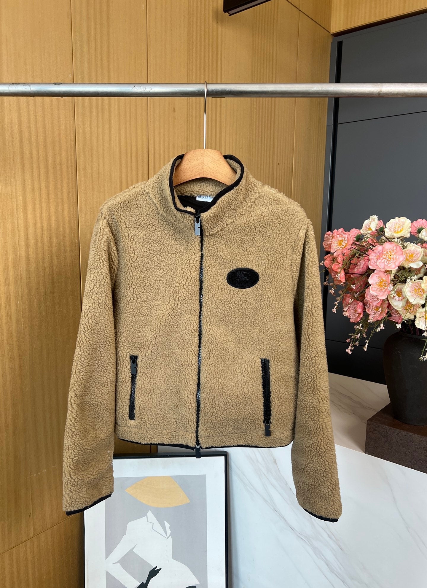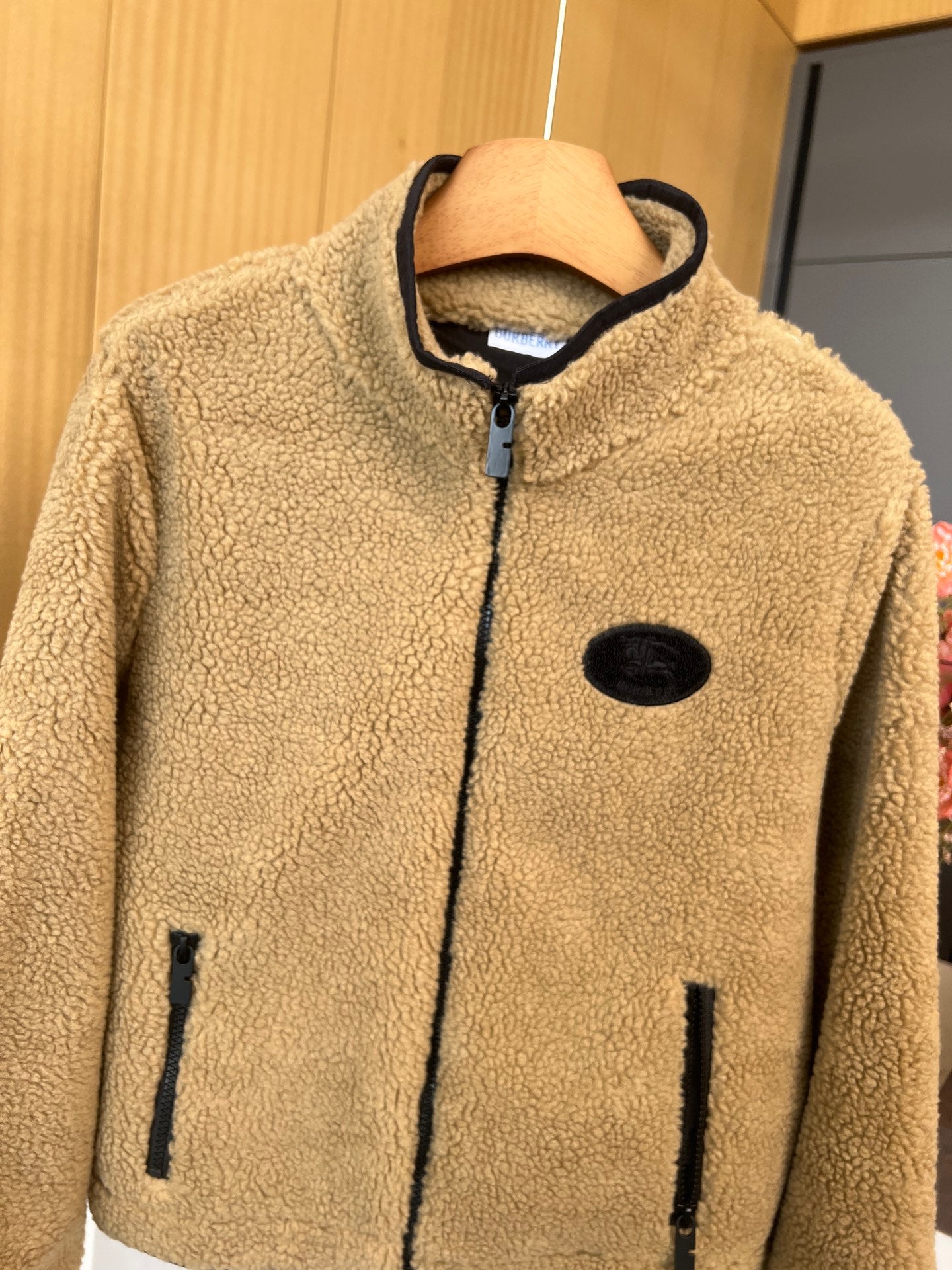 Burberry 25 Short Jacket Camel mix Black Shearling Fabric