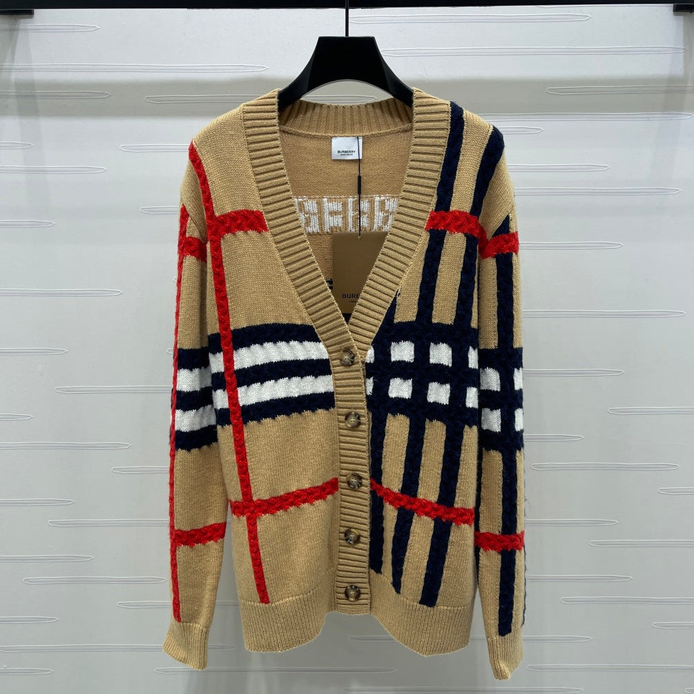 Burberry 25 V-neck Long-sleeved Cardigan Beige Wool Cashmere