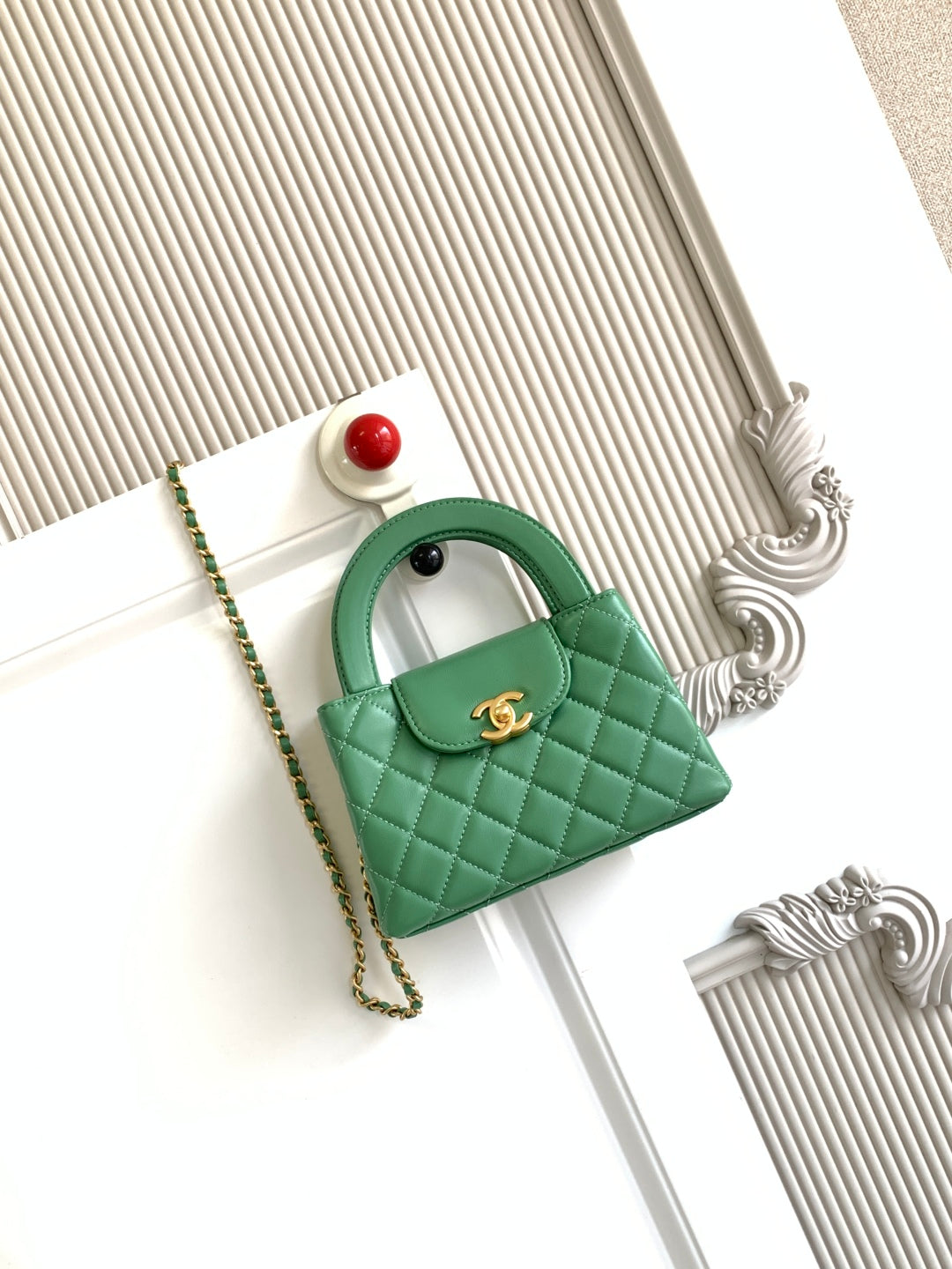 cc 24a nano 19cm kelly shopper bag light green lambskin