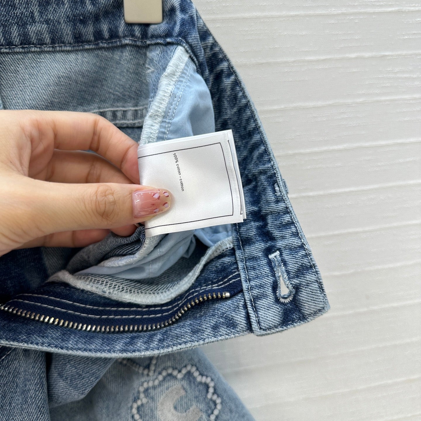 CC 25 Embroidered Short Skirt Blue Denim Cotton