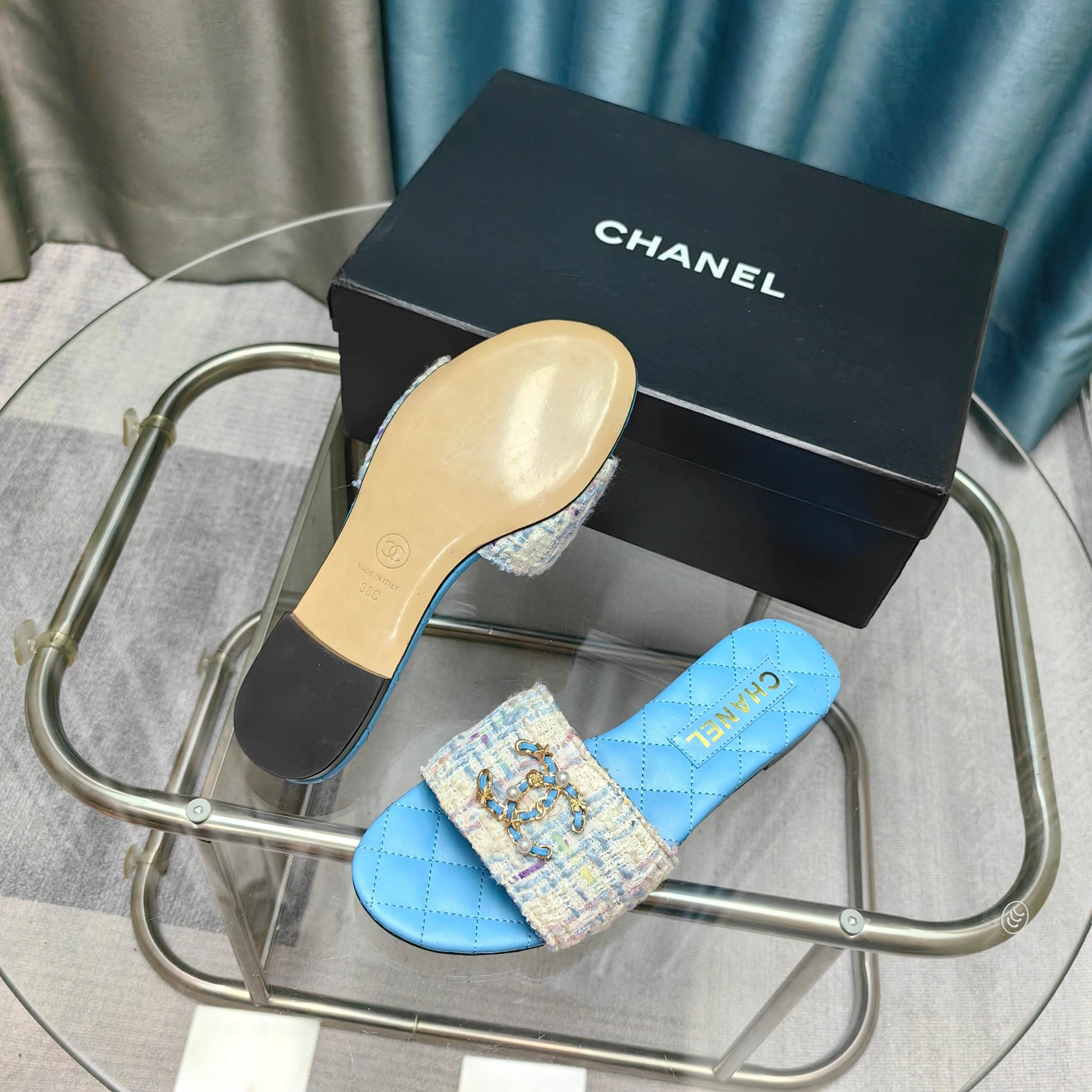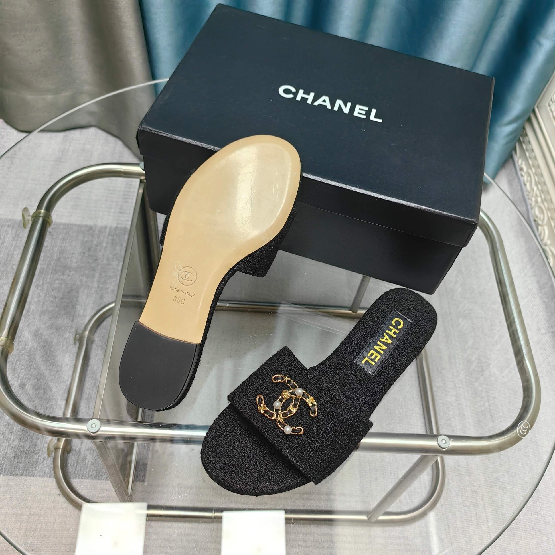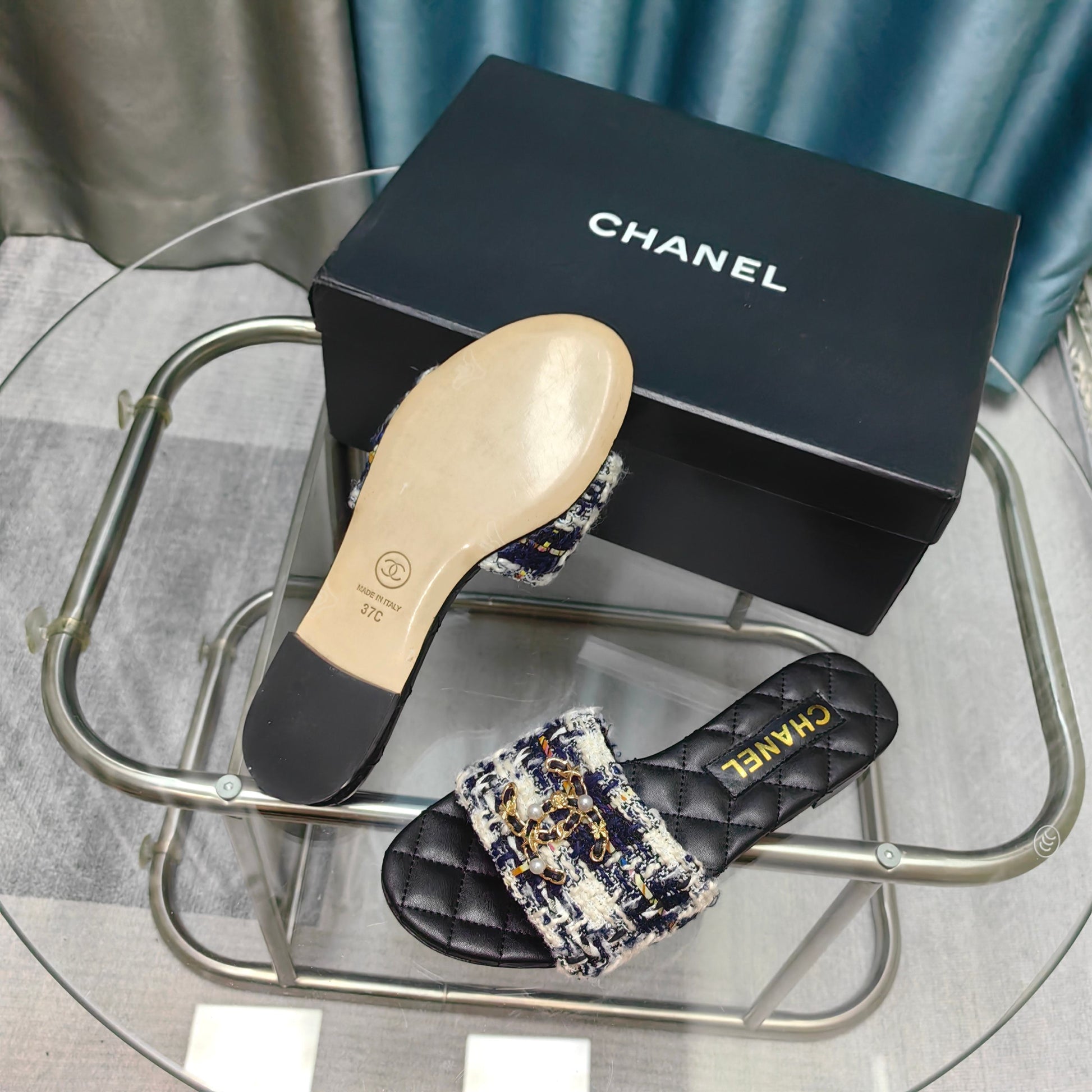 - Material: Tweed, Calfskin