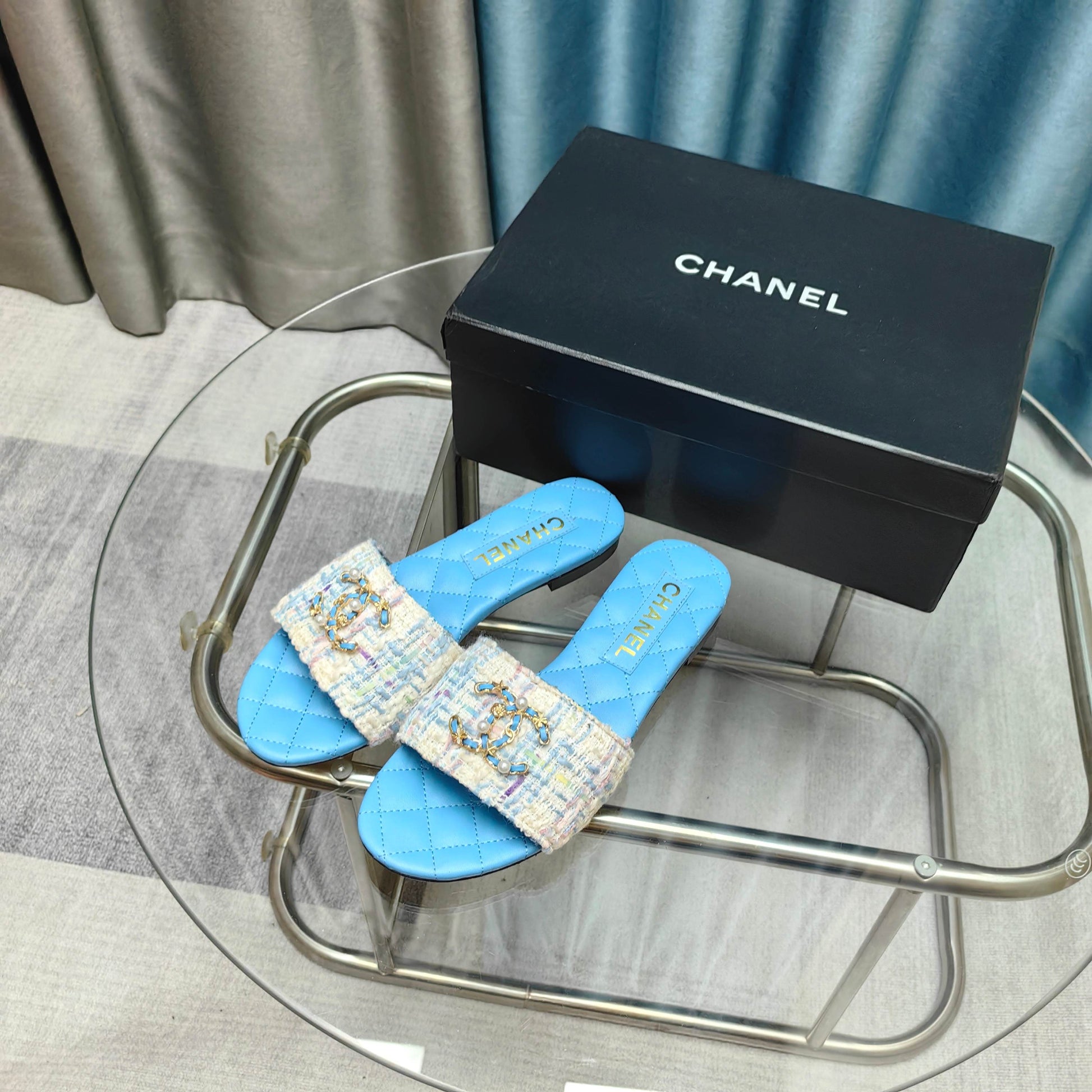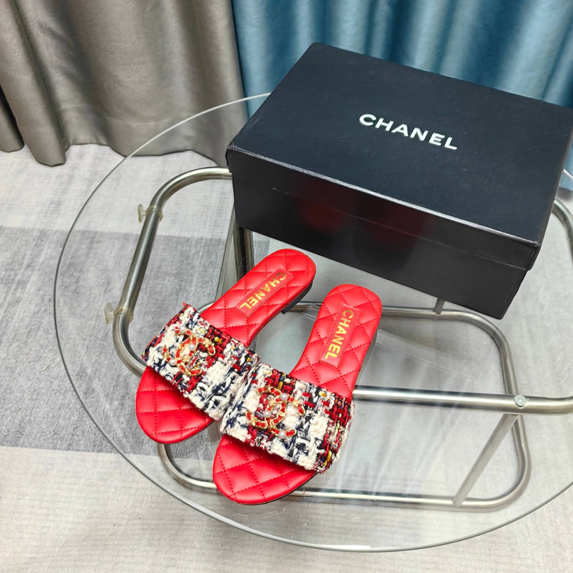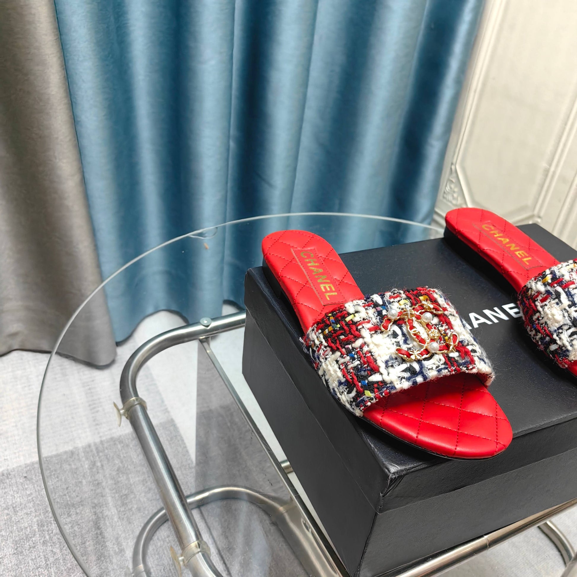 - Material: Tweed, Calfskin