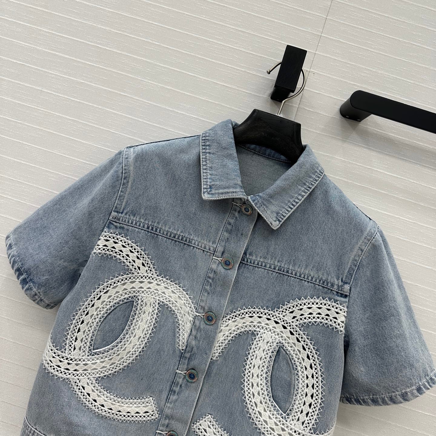 CC 25 Round Neck Short-sleeved Jacket Light Blue Denim Cotton