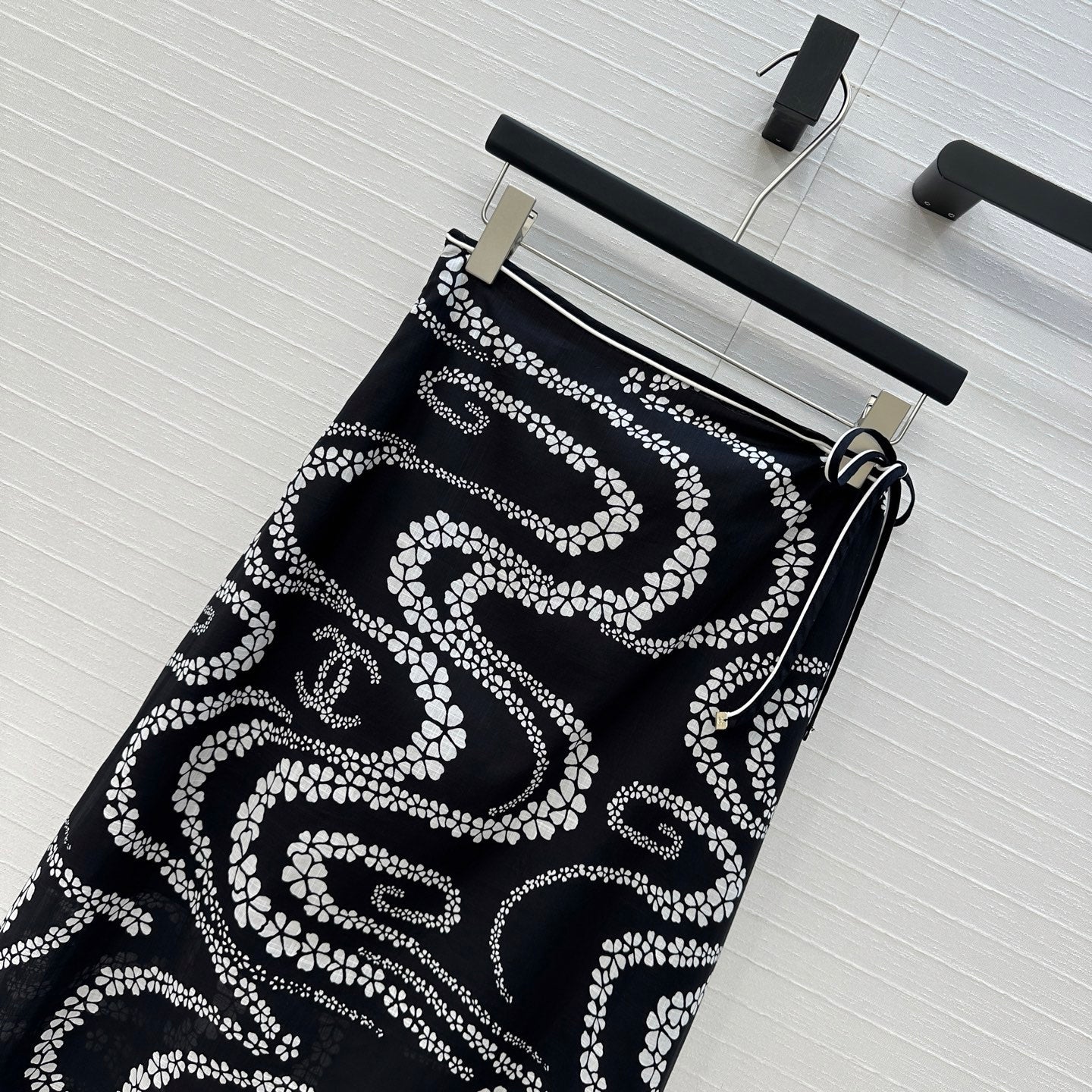 CC 25 Wave Pattern Long Skirt Black Silk Cotton