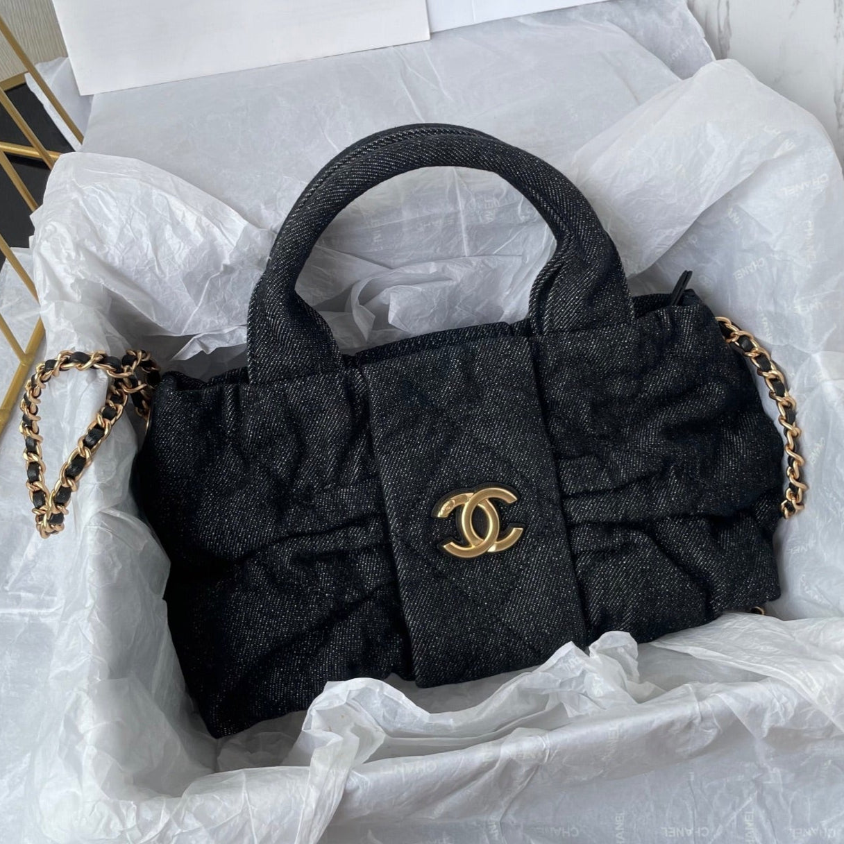 CC 25K Mini Bow Bag 26cm Black Denim