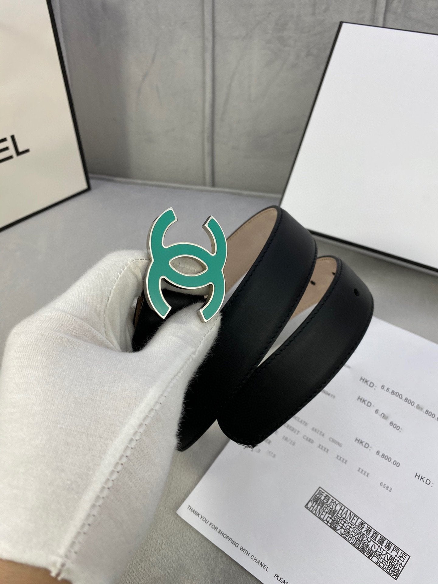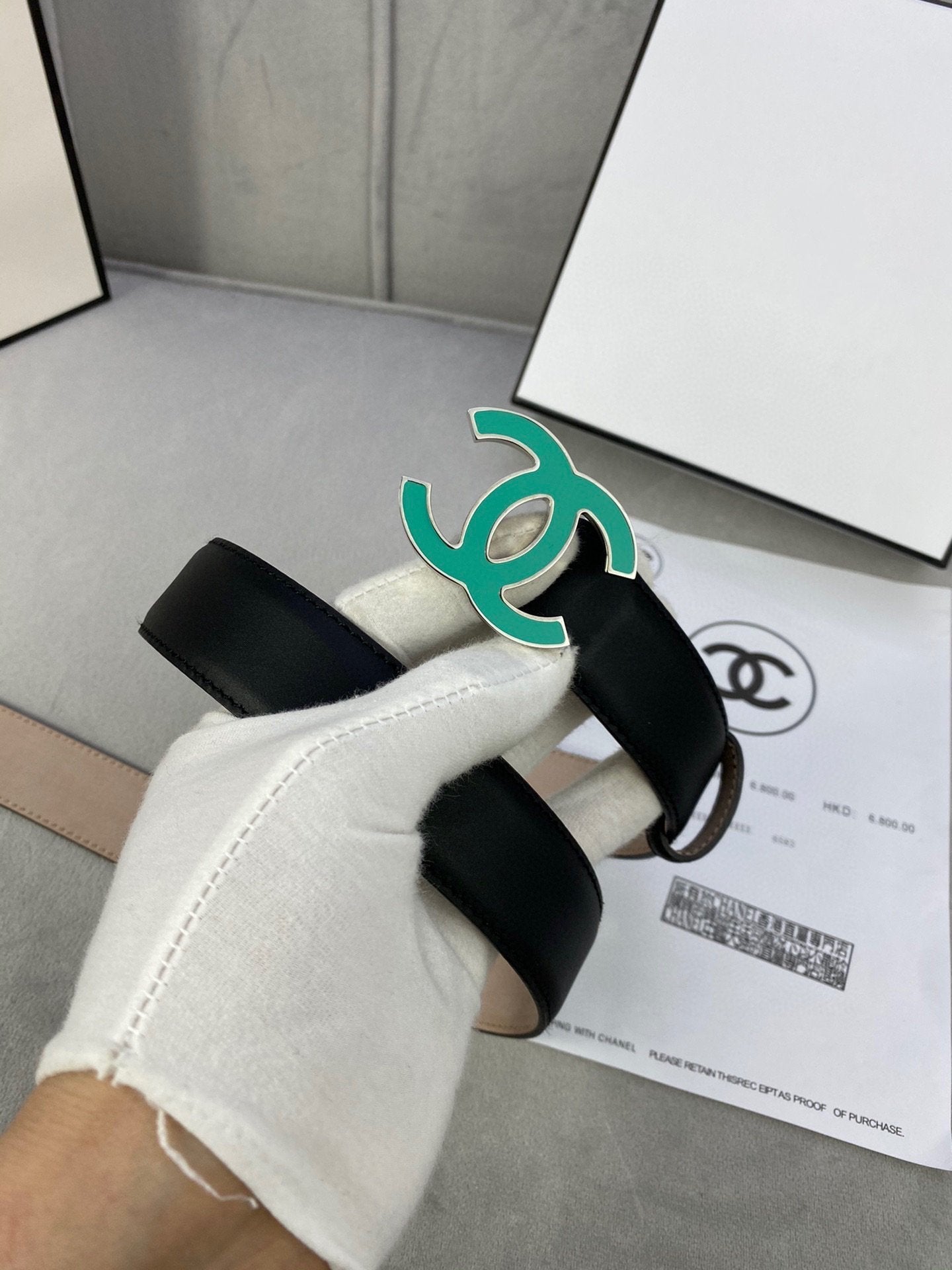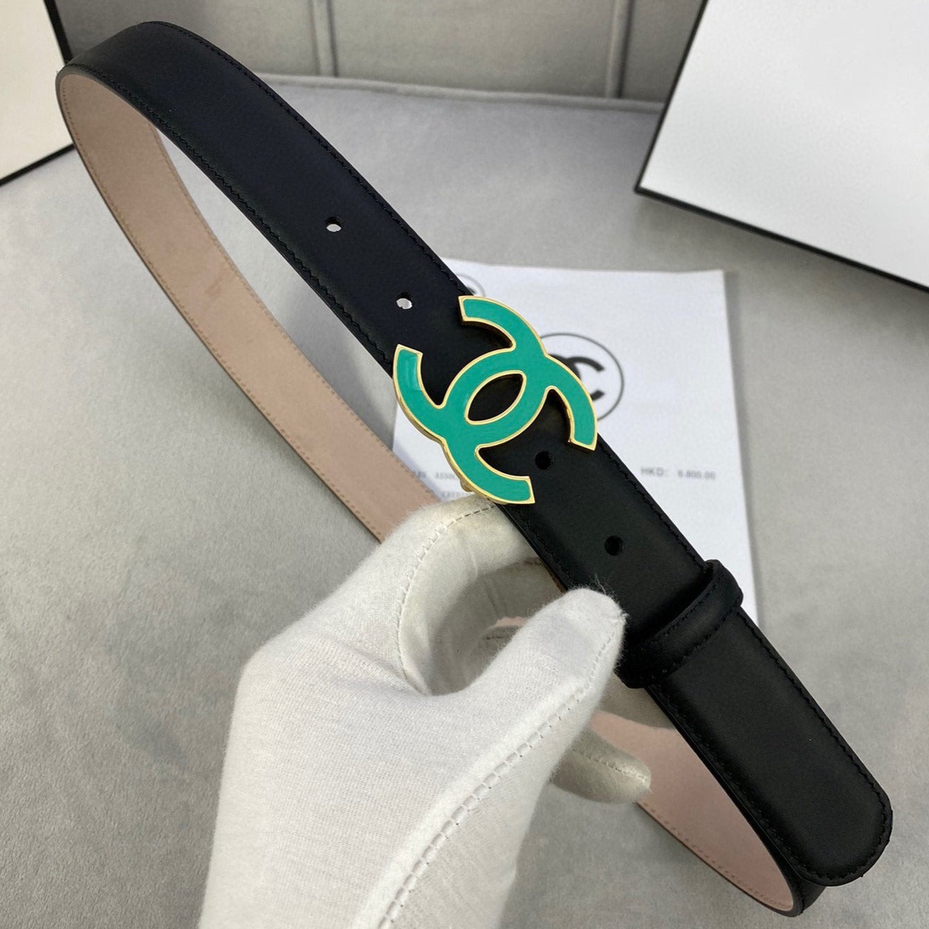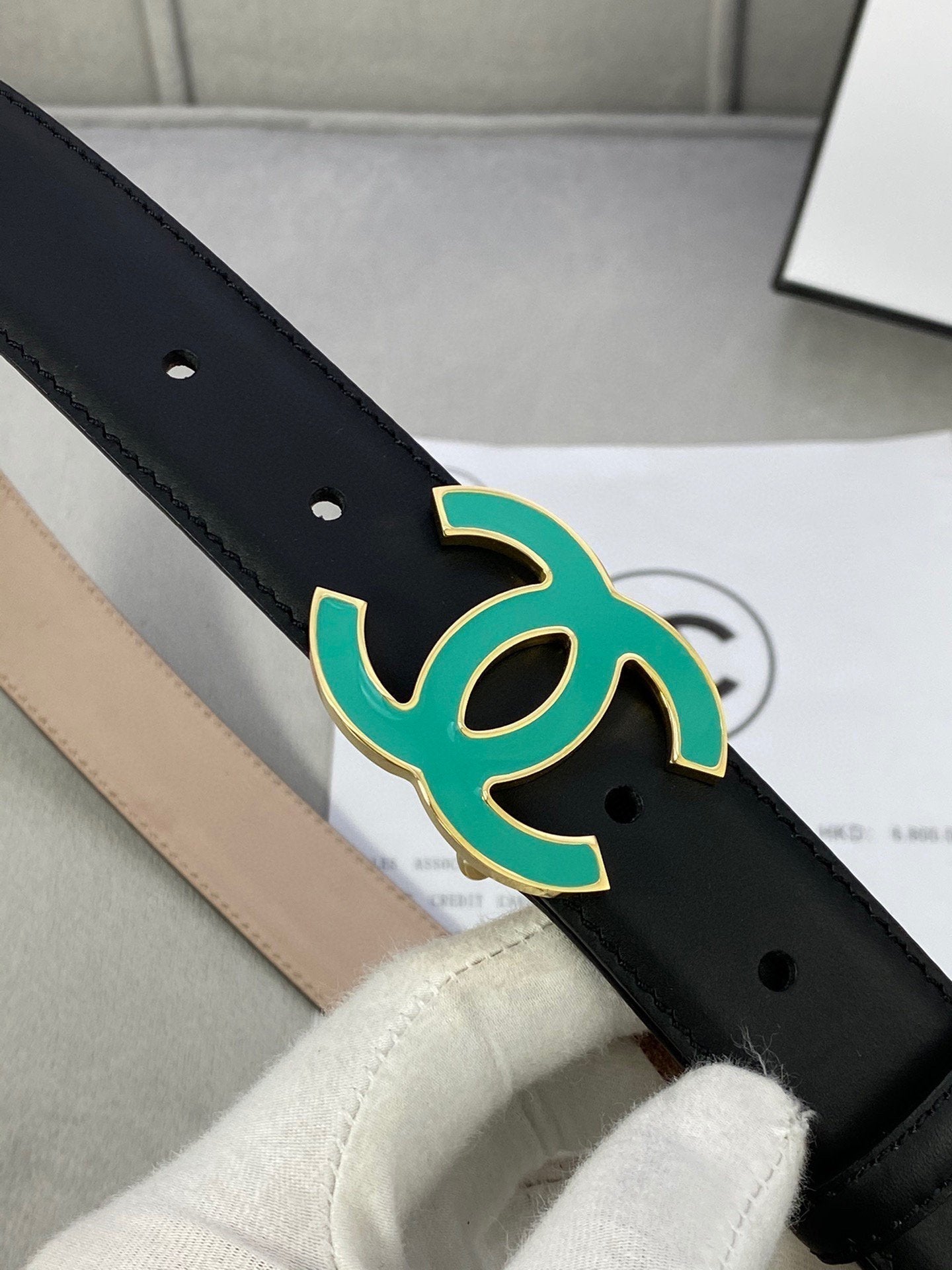CC BELT 3.0CM BUCKLE BLUE LEATHER BLACK