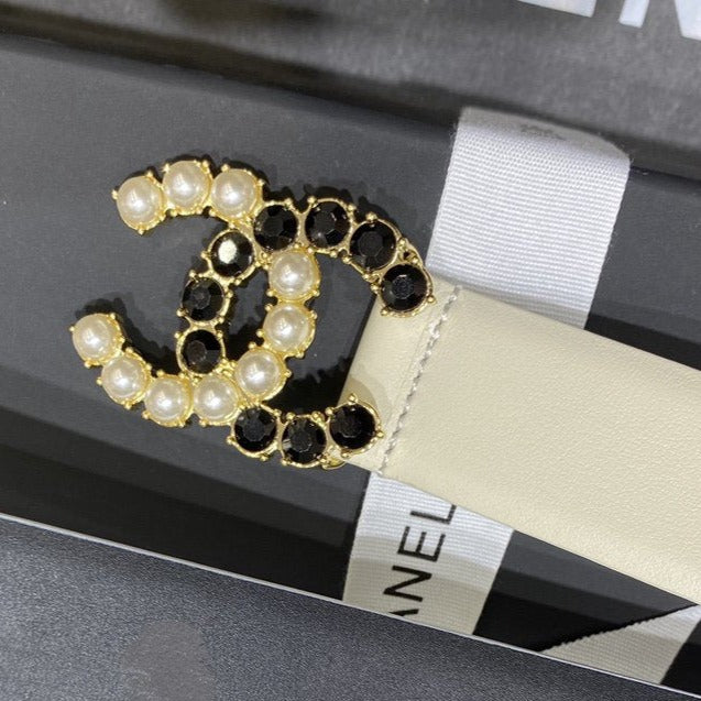 CC BELT 3.0CM LEATHER WHITE BUCKLE GOLD PEARL DIAMOND