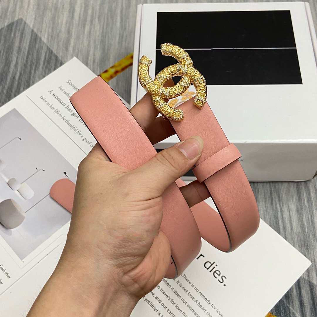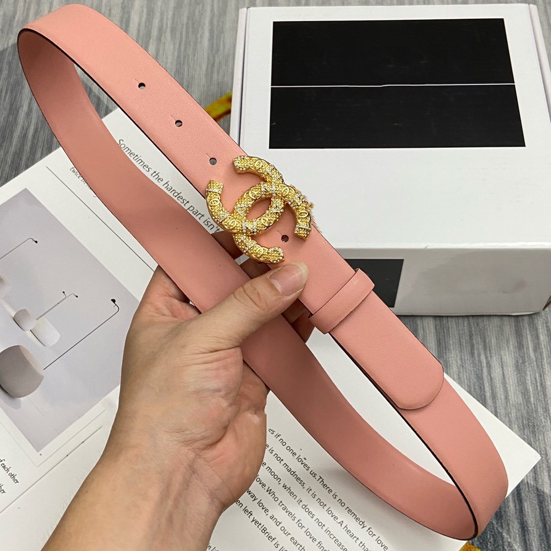 CC BELT 30MM BUCKLE GOLD DIAMOND LEATHER PINK