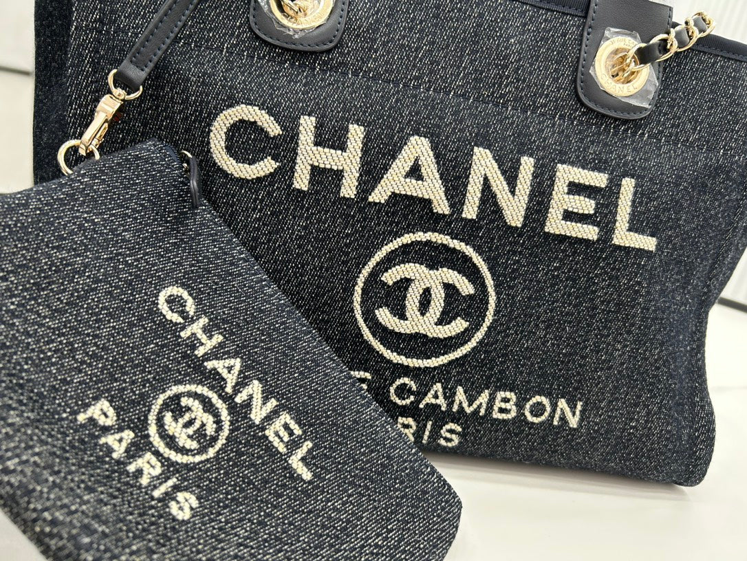 CC Deauville Tweed Bag 33x26x15.5cm Black Leather Gold Hardware 26