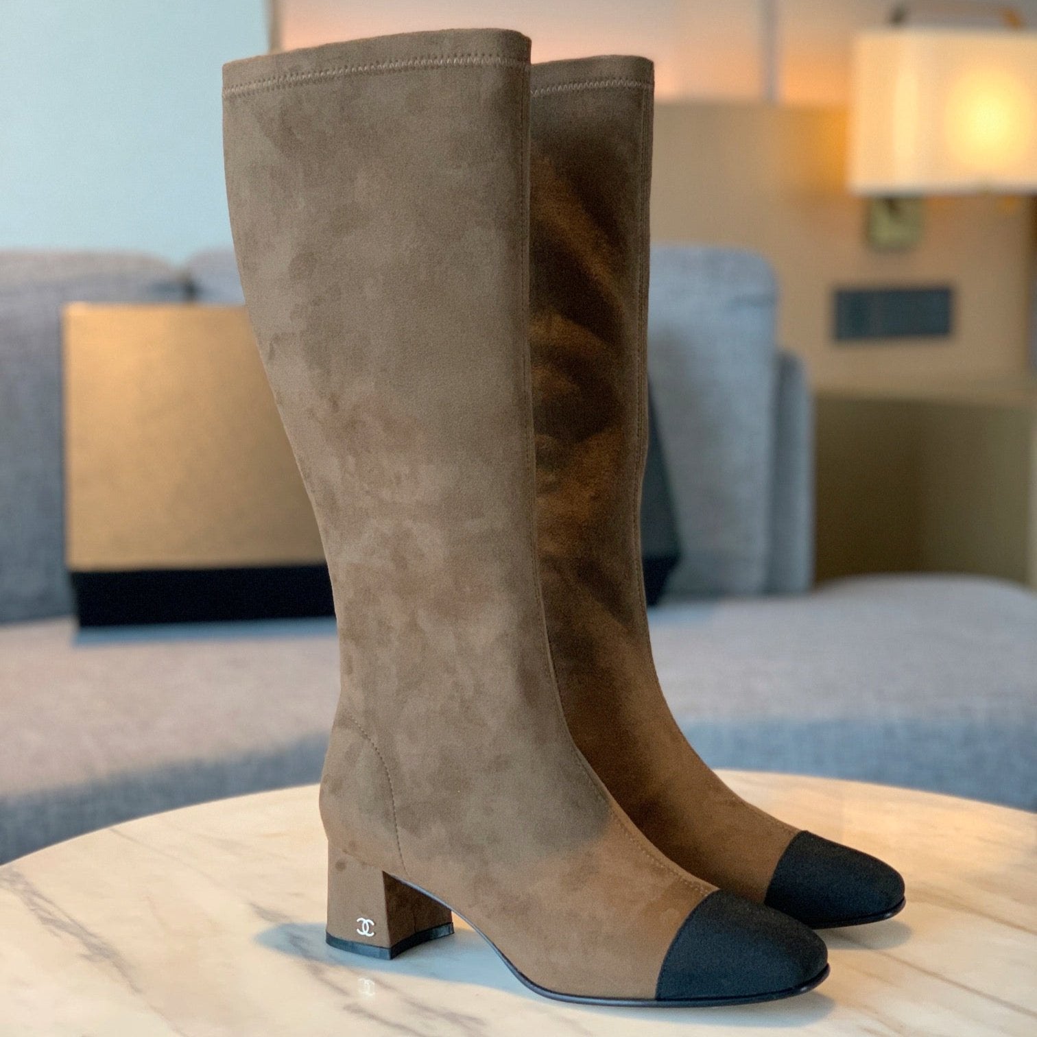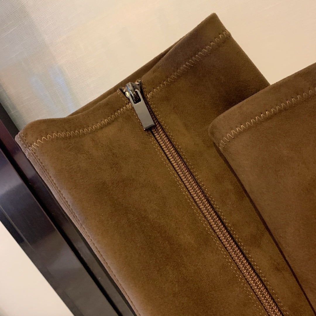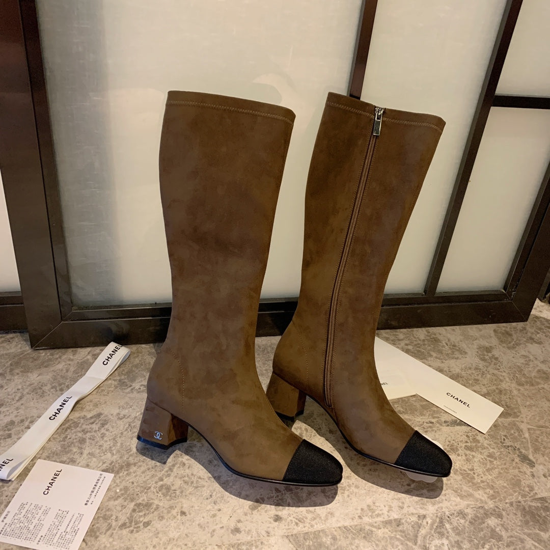CC High Boots 50mm In Coffee Black Suede And Lycra Fabric 940062