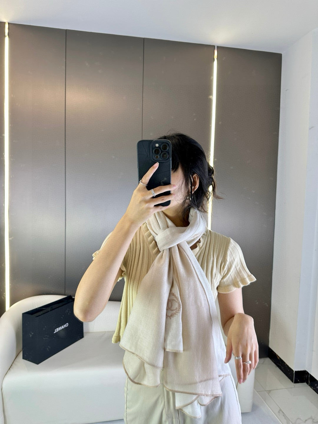 CC Scarf 200 CM In Light Beige Mix Dark Beige Cashmere Silk 396446