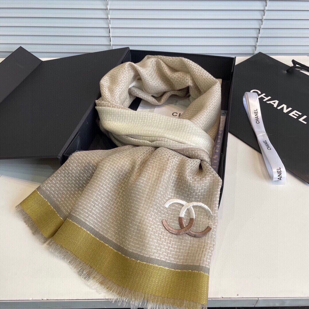 CC Scarf 200 CM In Light Brown Yellow Mix White Ivory Cashmere 413836