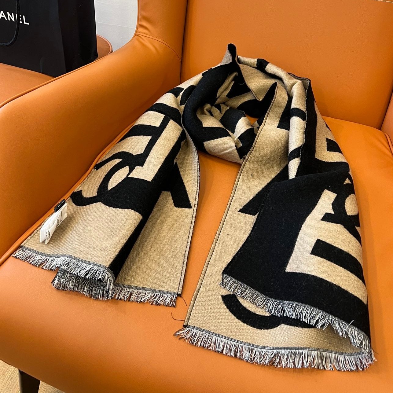 CC Scarf 202 CM In Black Mix Dark Beige Fleece Wool And Mulberry Silk 335914