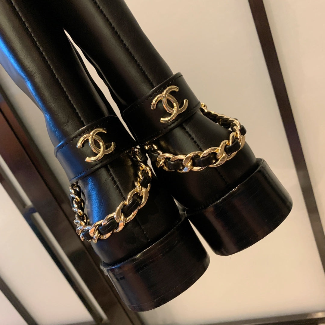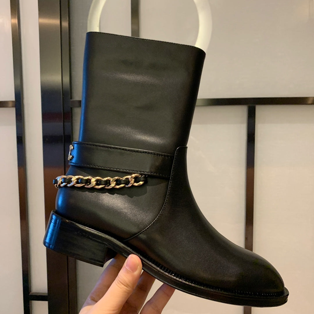 CC Short Boots 35mm In Black With Chain Cowhide 940089