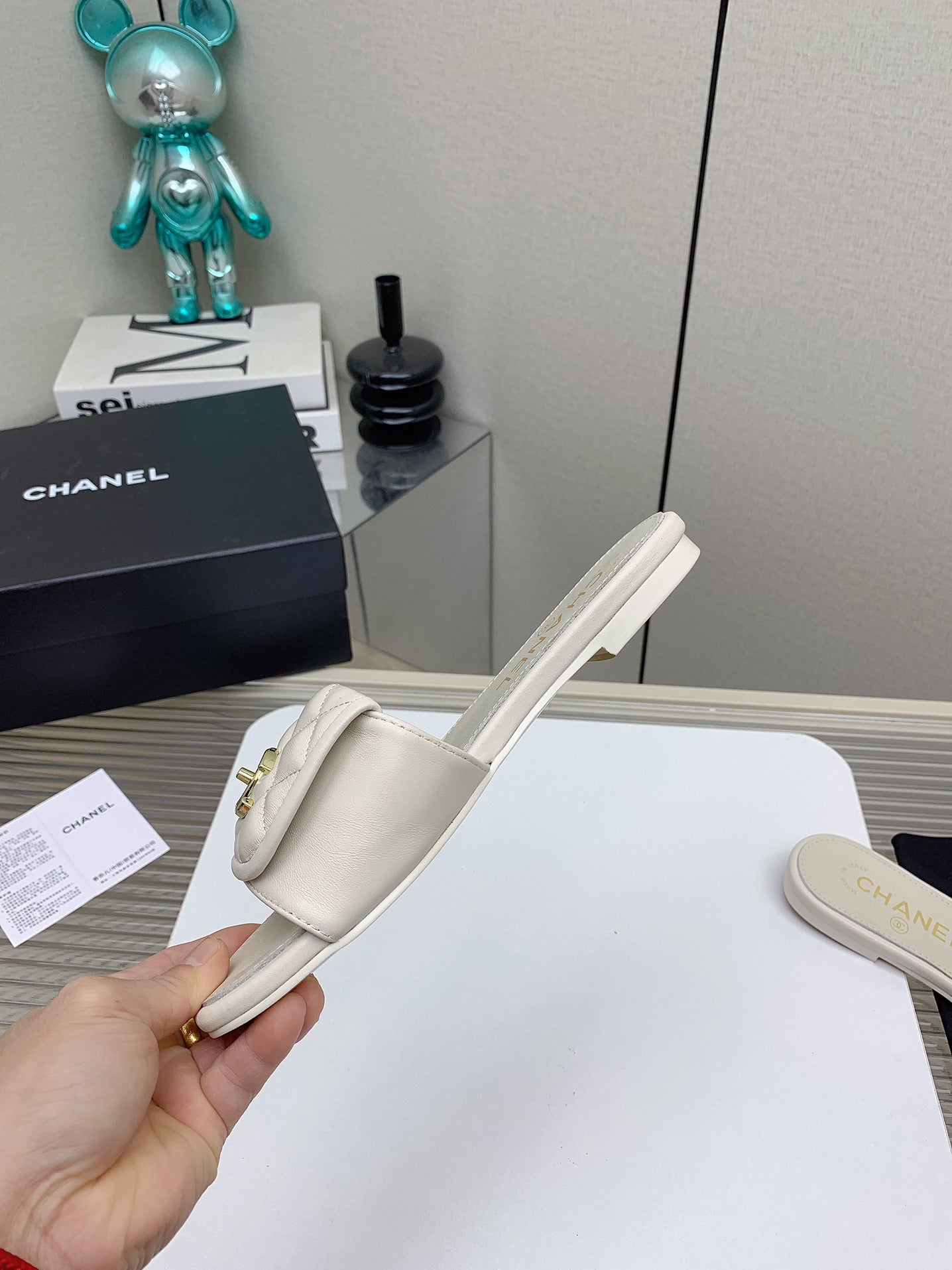 CC Slippers In White Quilted Lambskin 148961
