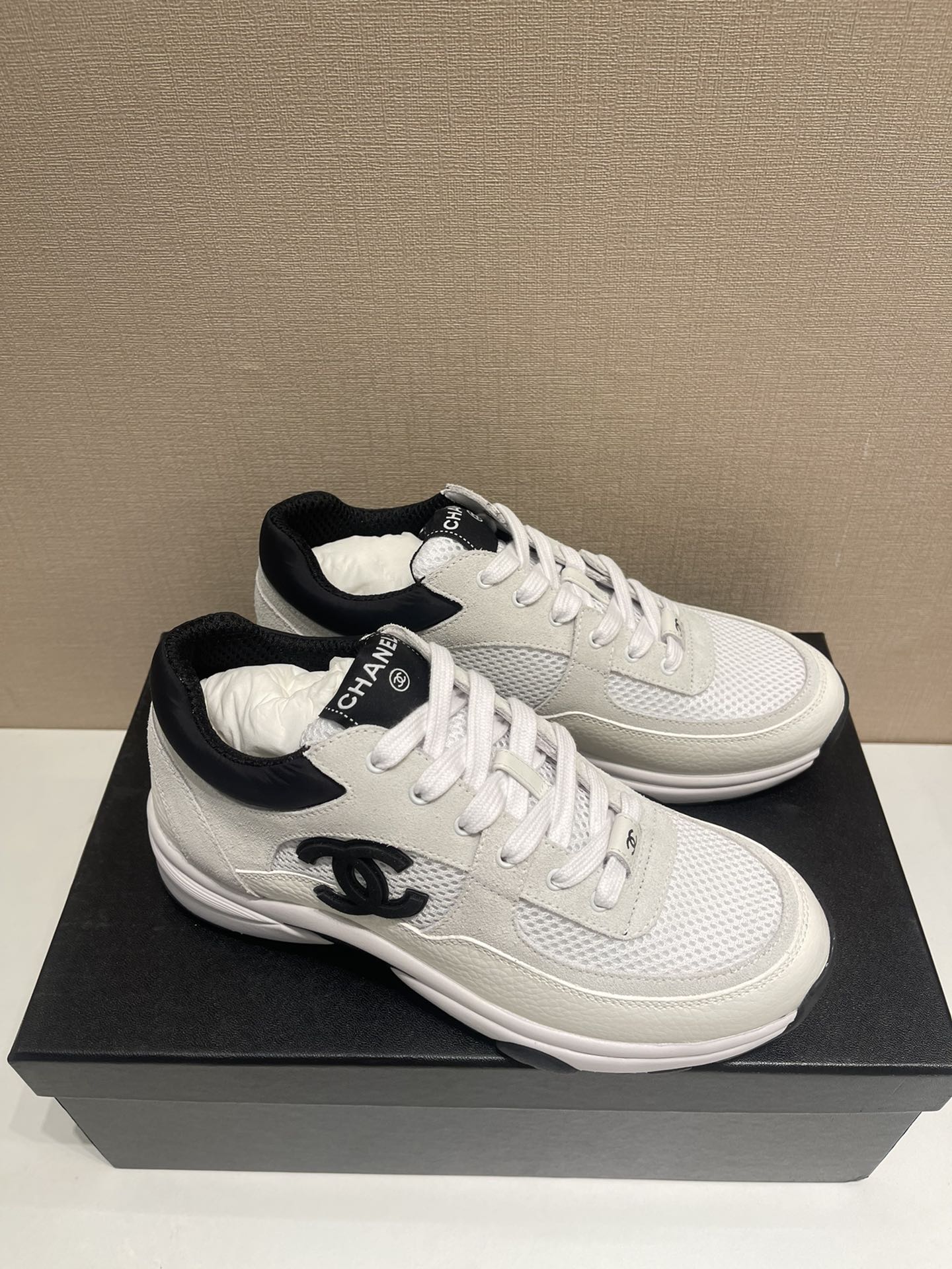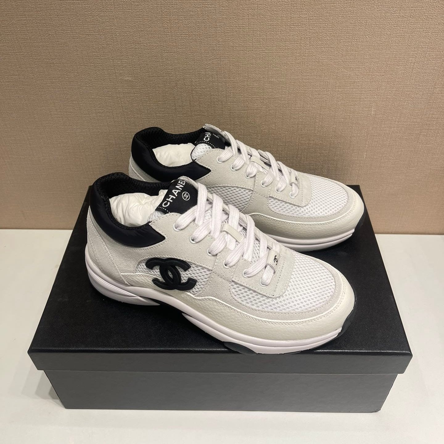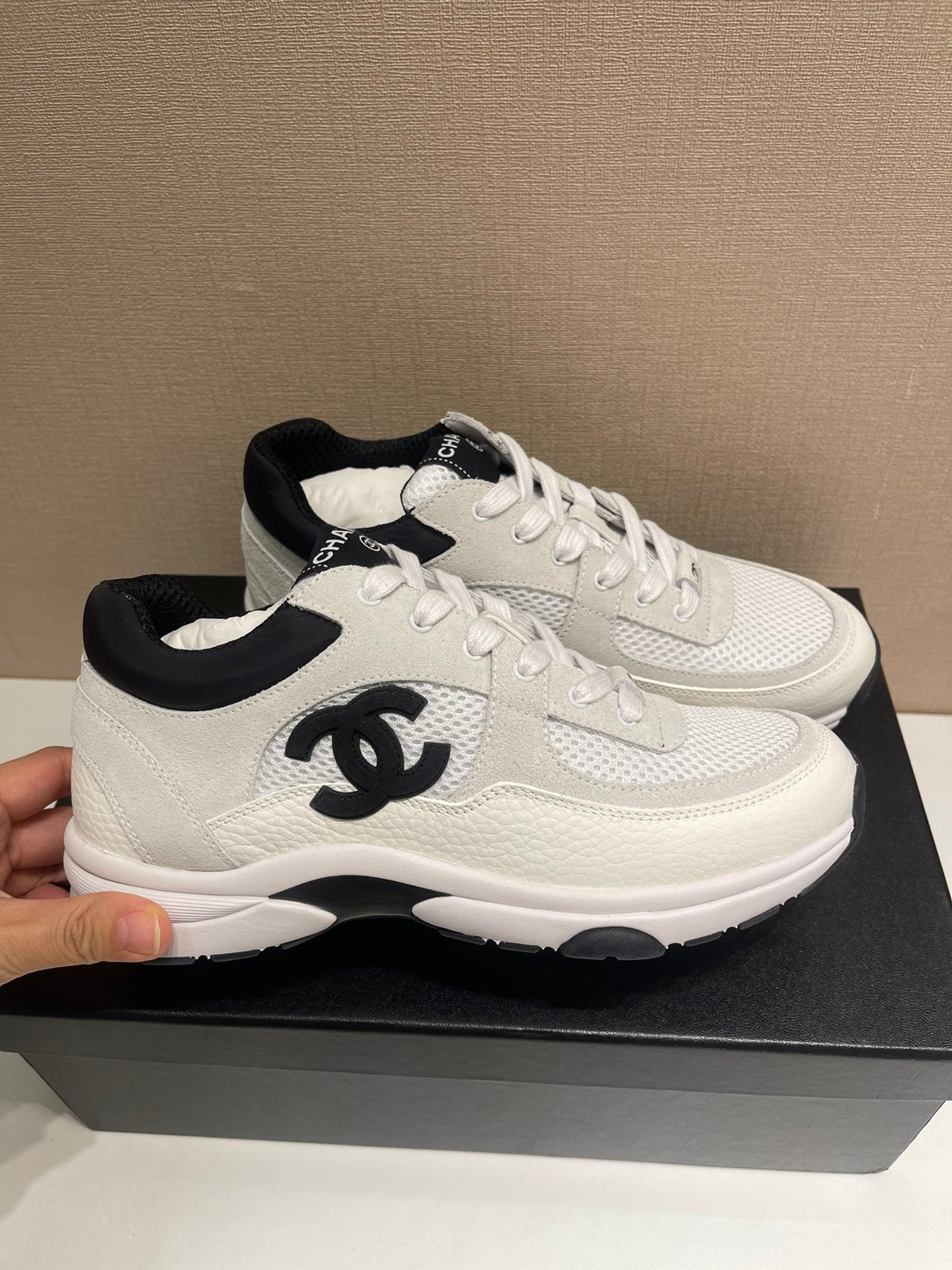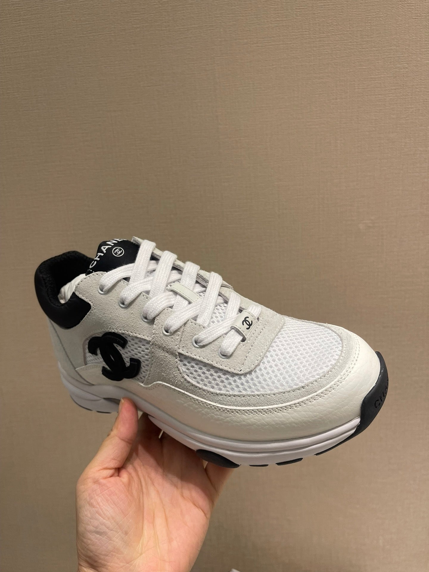 CC Sneaker White Calfskin Grey Suede